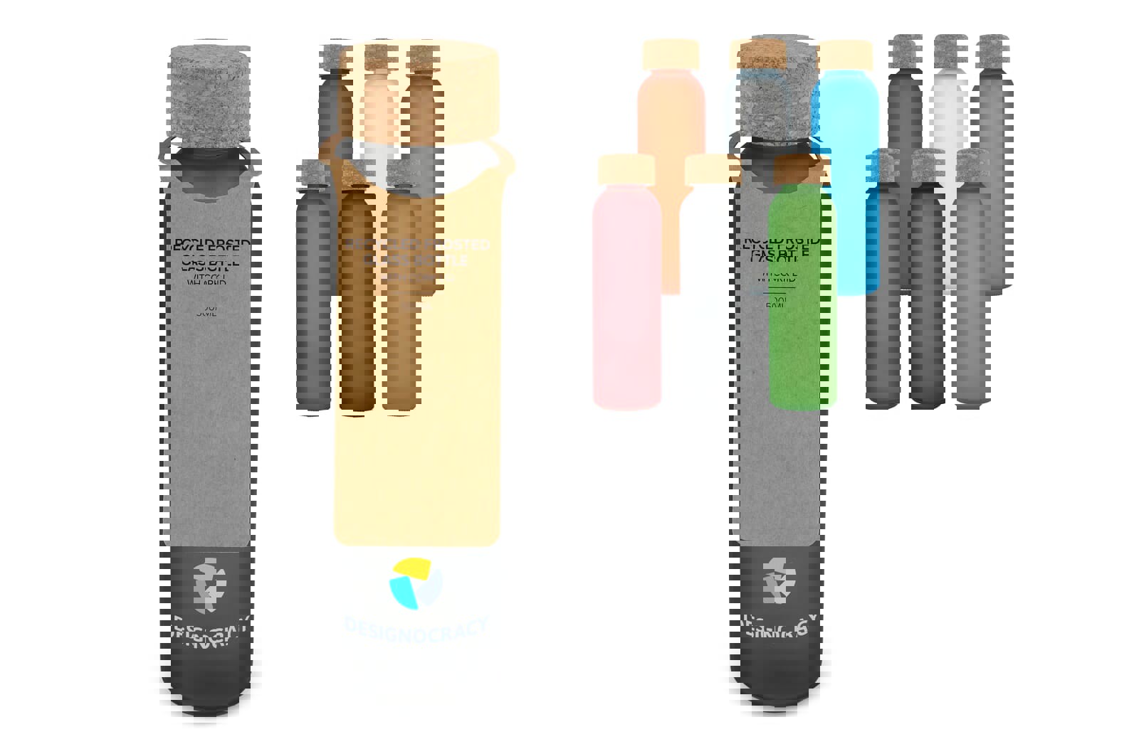 The Frosted Glass Bottle offers a 500ml capacity and a chic frosted finish, paired with a natural cork lid.