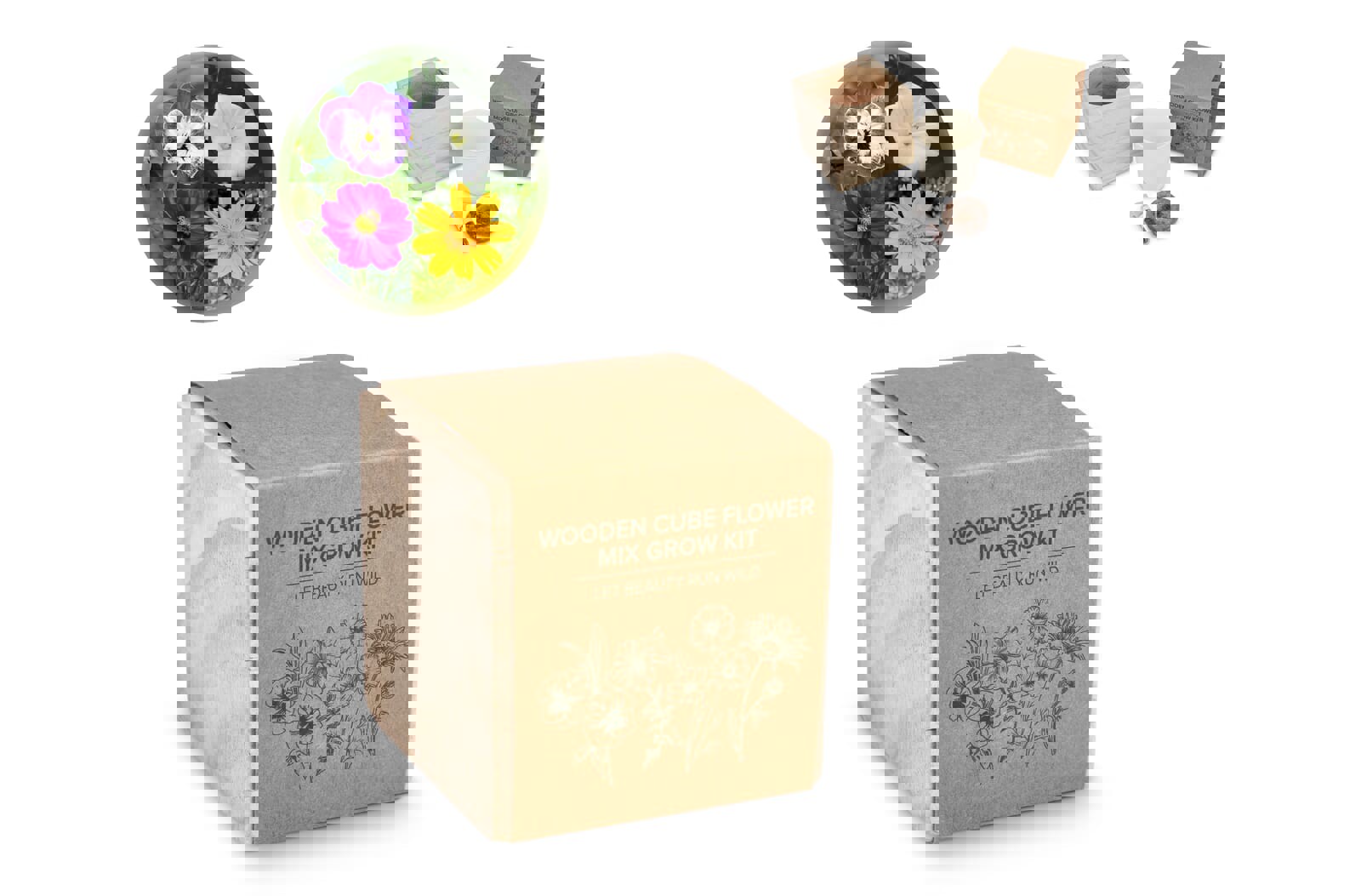 Let beauty run wild! Bring biodiversity and colour to life with this planter kit and coconut fibre soil. Includes a wildflower mix of cosmos, coreopsis, pansy, and morning glory. A gift that lets brands bloom while spreading natural beauty.