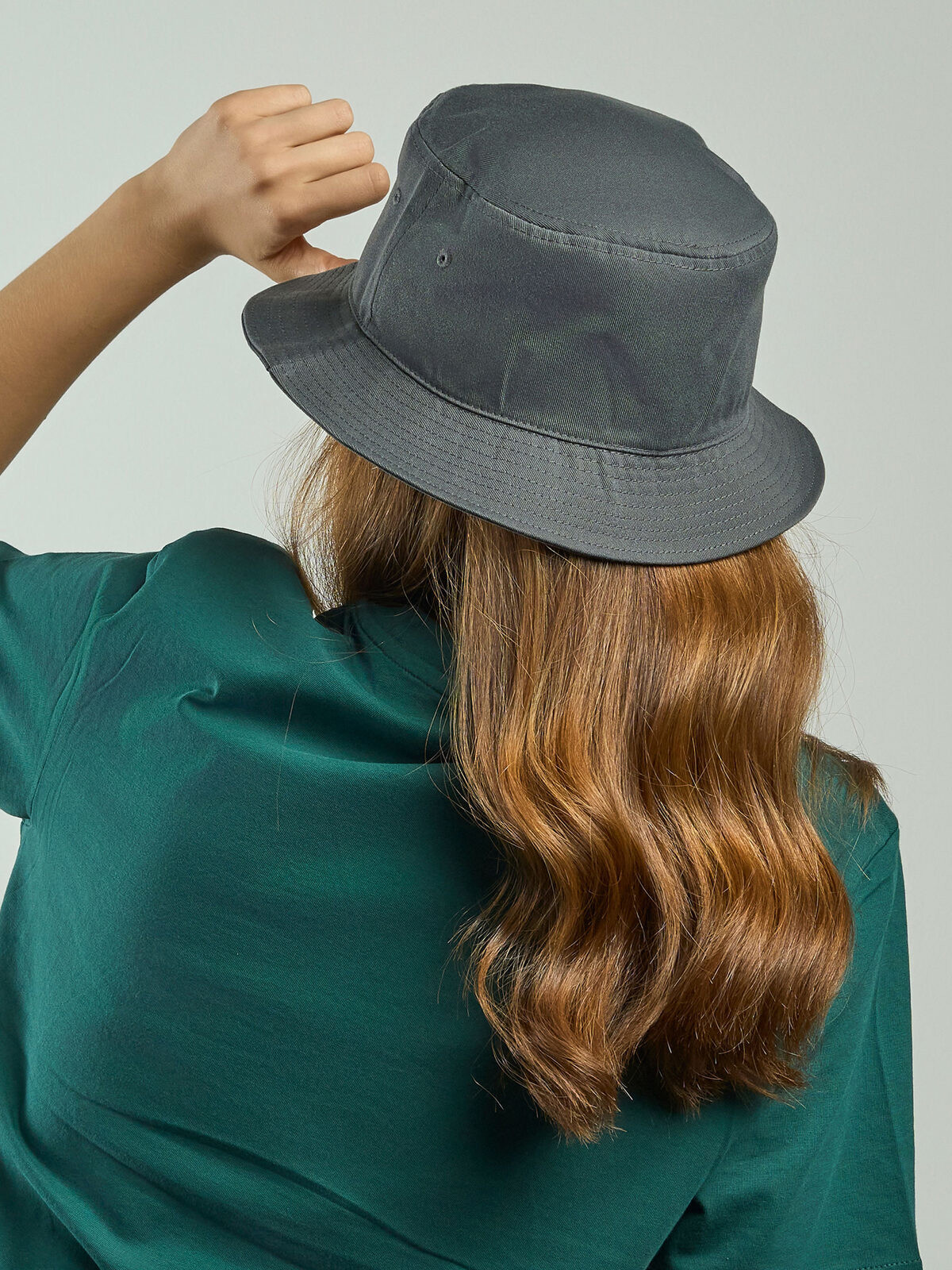 100% certified recycled polyester twill. Bucket shape, recycled polyester, stitched eyelets, polyester sweatband. Removable label. Circumference: 58.5 cm