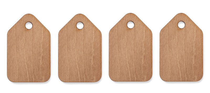 A set of hangers with Christmas-themed prints. To be hung as a Christmas tree decoration or as a gift hanger. The set includes four pieces. They are made of wood.