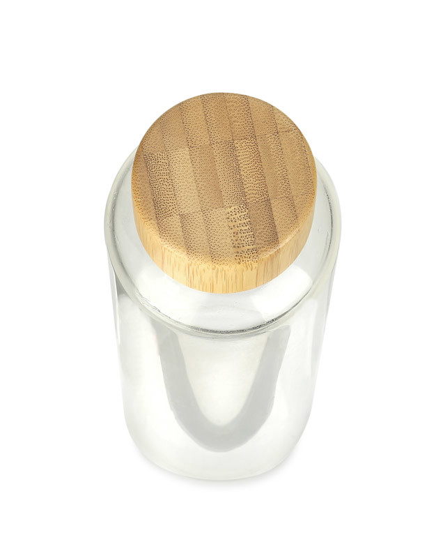 The 550 ml VENI bottle is an environment-friendly alternative to plastic bottles. It is made of borosilicate glass, which is a high-quality glass that is resistant to high temperatures. The nut is finished with natural bamboo. Additionally, the bottle has a cork and neoprene cover, which makes it very comfortable to hold and safer to use.