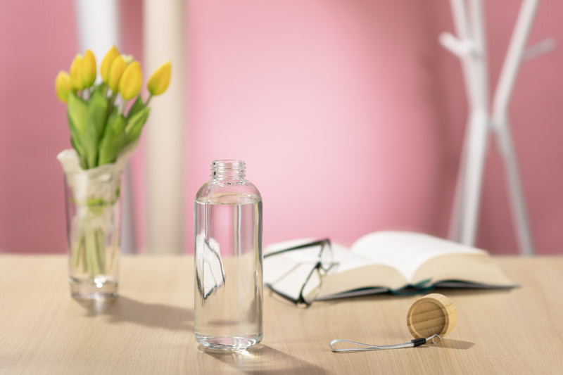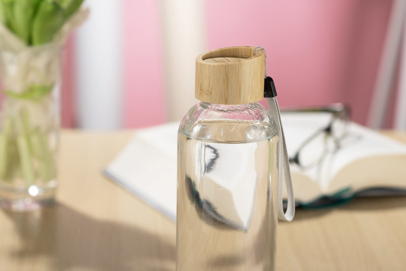 The 650 ml VITRO glass bottle is made of borosilicate glass, which is characterised by its high resistance to temperature changes. The natural bamboo cap has an original bevelled shape, which gives the bottle a modern look. The included lanyard makes it easy to carry and use on a daily basis. The possibility of labelling makes VITRO an attractive promotional bottle.