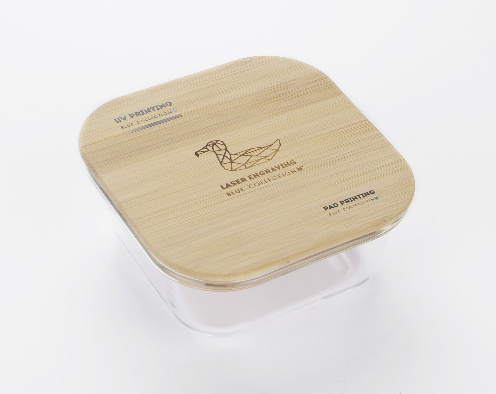The SOLA food container is made of high-quality borosilicate glass. The container has a lid made of natural bamboo. It can be used as a lunch box, as a food storage container. It can also be used to heat food in an oven or microwave. Capacity 350 ml