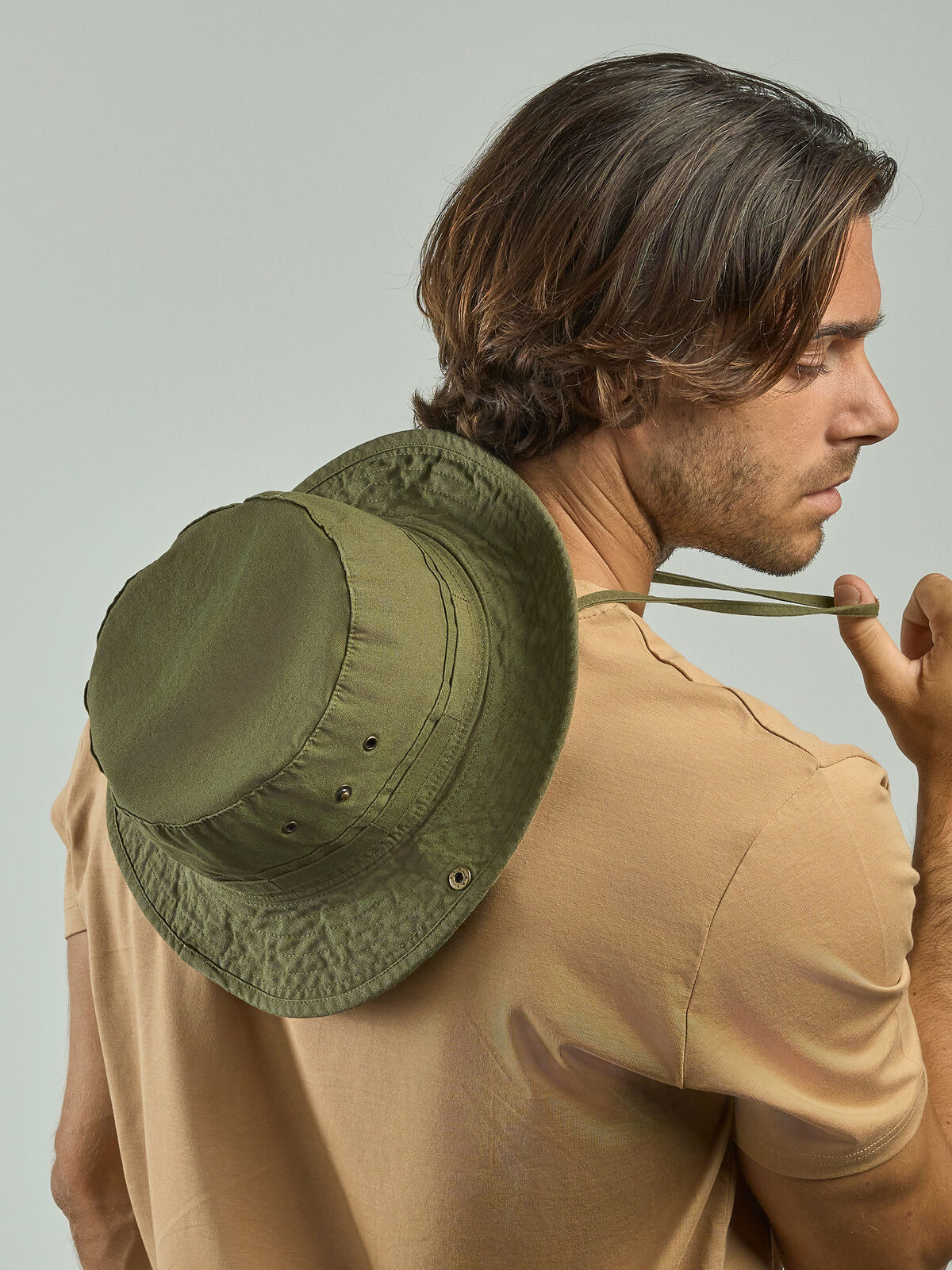 100% organic cotton canvas. Organic and recycled cotton western hat, metal eyelets, double size, hat tie. Removable label. Ex code: ATGLTR