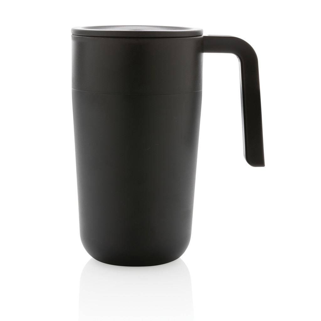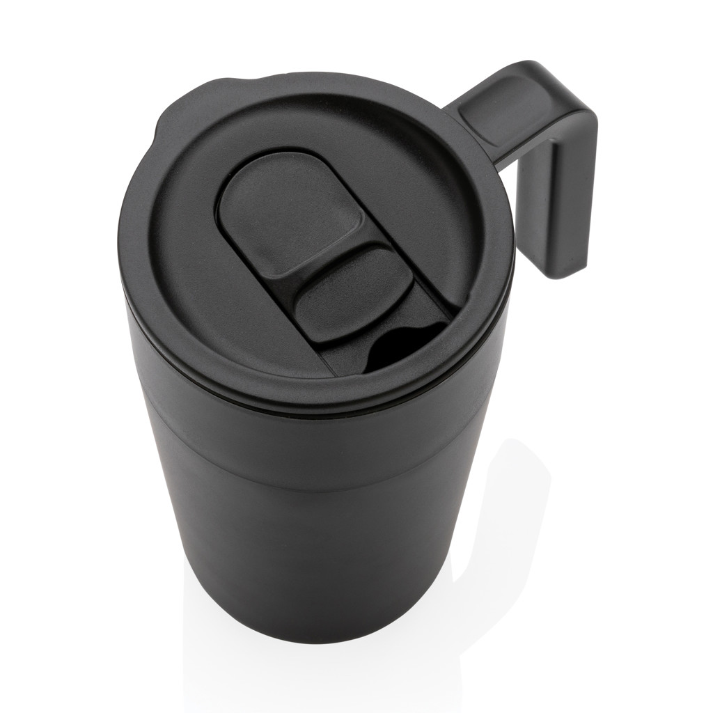 Njegov vgrajen ročaj je idealen spremljevalec na potovanjih, saj zagotavlja, da bodo vaše tople ali hladne pijače med prevozom na delo in domov. Zunanjo lupino, izdelano iz trpežnega polipropilena in nerjavečega jekla, je tudi enostavno razstaviti za recikliranje, zaradi česar je odgovorno in trajnostno promocijsko darilo. Popolnoma brez BPA in zasnovana za ročno pranje, ta skodelica odraža sodobne vrednote tako v uporabnosti kot v skrbi za okolje.