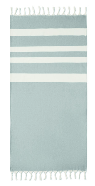 Popolna za dogodke na prostem, pohodništvo ali športne dneve, ta brisača blokira do 98 % sončne svetlobe in ponuja UV50+ zaščita, zaradi česar je premišljeno in funkcionalno poslovno darilo. Vzdržljiva steklenička, izdelana iz polipropilena in ABS, ima priročno sponko s karabinom za enostavno prenašanje. Z merami 77 x 30 cm zagotavlja popolno funkcionalnost v kompaktnem formatu.