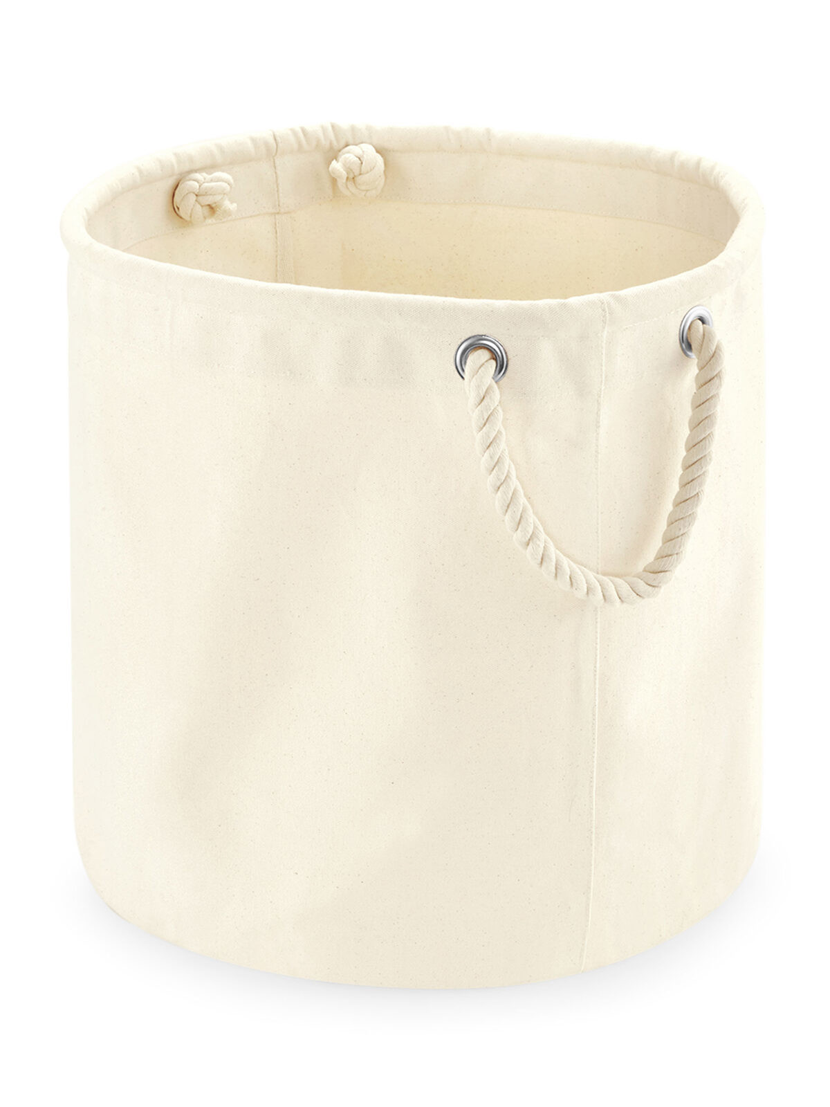 100% cotton canvas. Durable canvas construction, heavyweight rope carry handles, multi-purpose use. Removable label. Dimensions: S: 30x30cm, cap. 21lt. - M: 40x40cm, cap. 50lt. - L: 40x60cm, cap. 75lt.