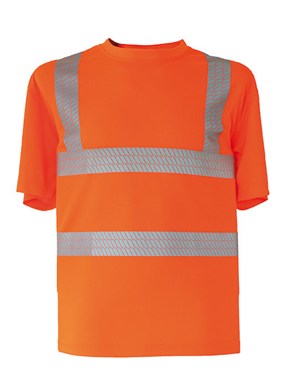 Izdelana iz 100 % zračnega in mehkega poliestra z lahkim 160 g/m² gramature ponuja celodnevno udobje tudi v aktivnih situacijah. Ta majica z dvema 5-cm širokima segmentiranima odsevnima trakovoma okoli telesa in ramen izpolnjuje stroge standarde EN ISO 20471:2013 + A1:2016 in je skladna tudi z GO/RT 3279 železniškimi predpisi, zaradi česar je idealna za gradbeništvo, promet in železniško industrijo profesionalci.