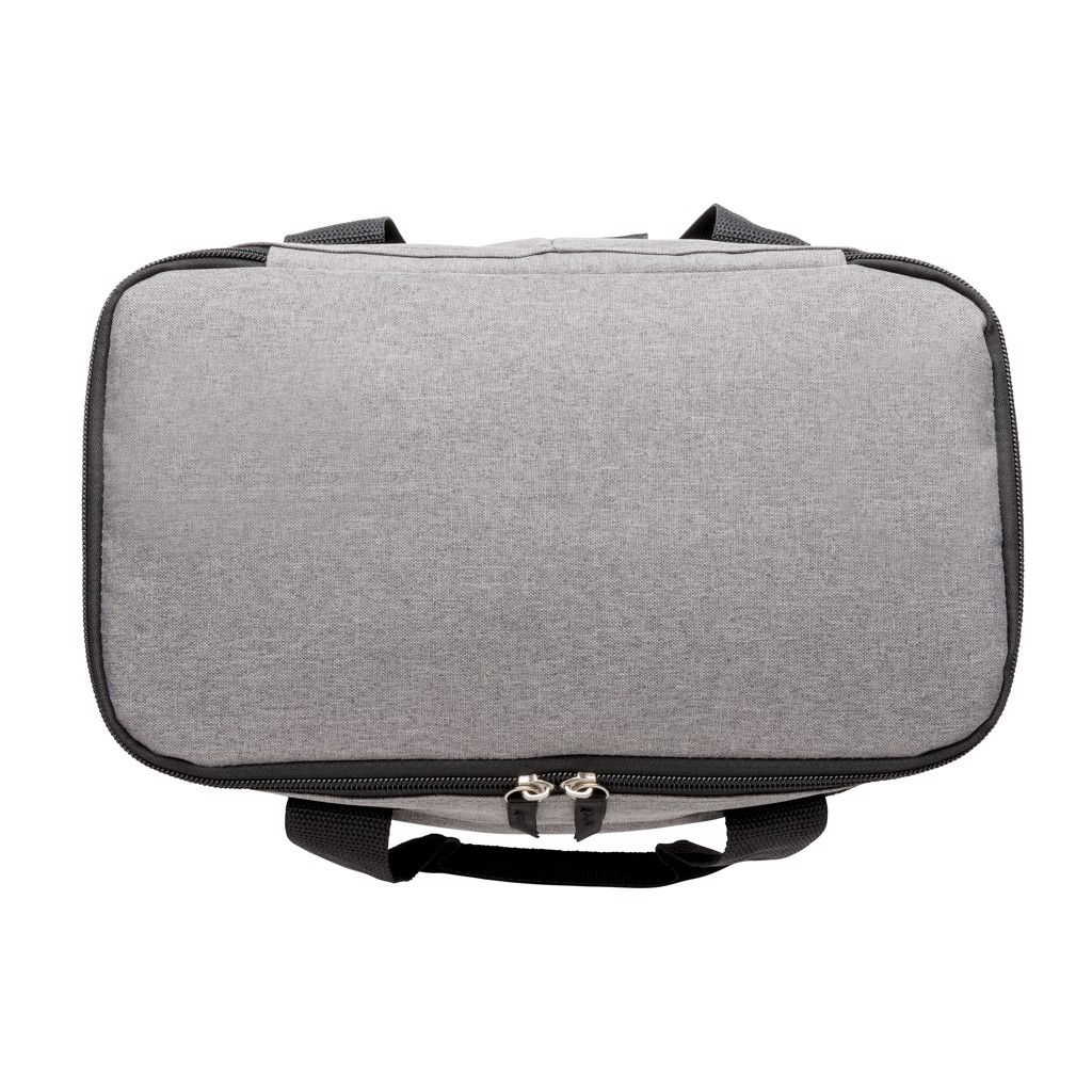 Praktična, elegantna in pripravljena na vsako potovanje – potovalna hladilna torba Deluxe iz priznane Zbirke XD je odlično promocijsko darilo za stranke ali sodelavce na poti. Izdelana iz robustnega 600D poliestra in podložena z izolacijskim polietilenom, ta hladilna torba ohranja osvežilne pijače hladne, hkrati pa nudi odlično vzdržljivost za vsakodnevna potovanja ali uporabo v prostem času.