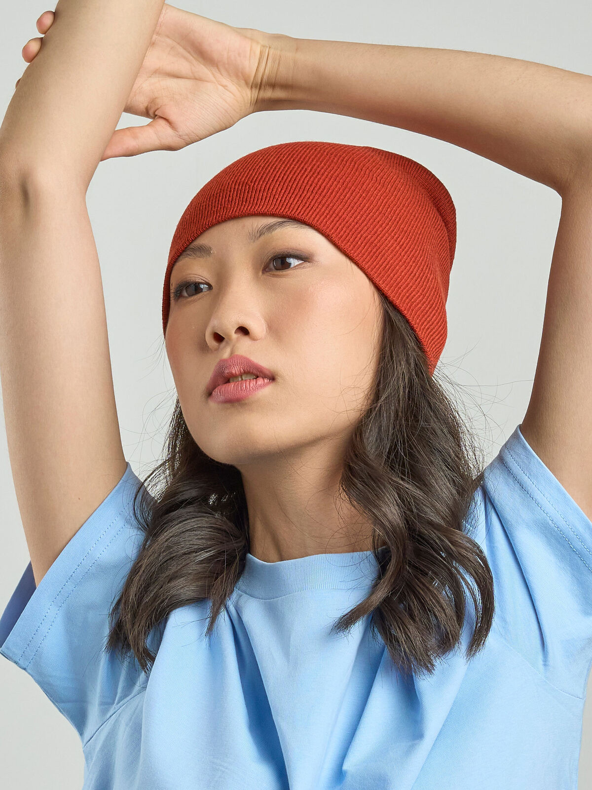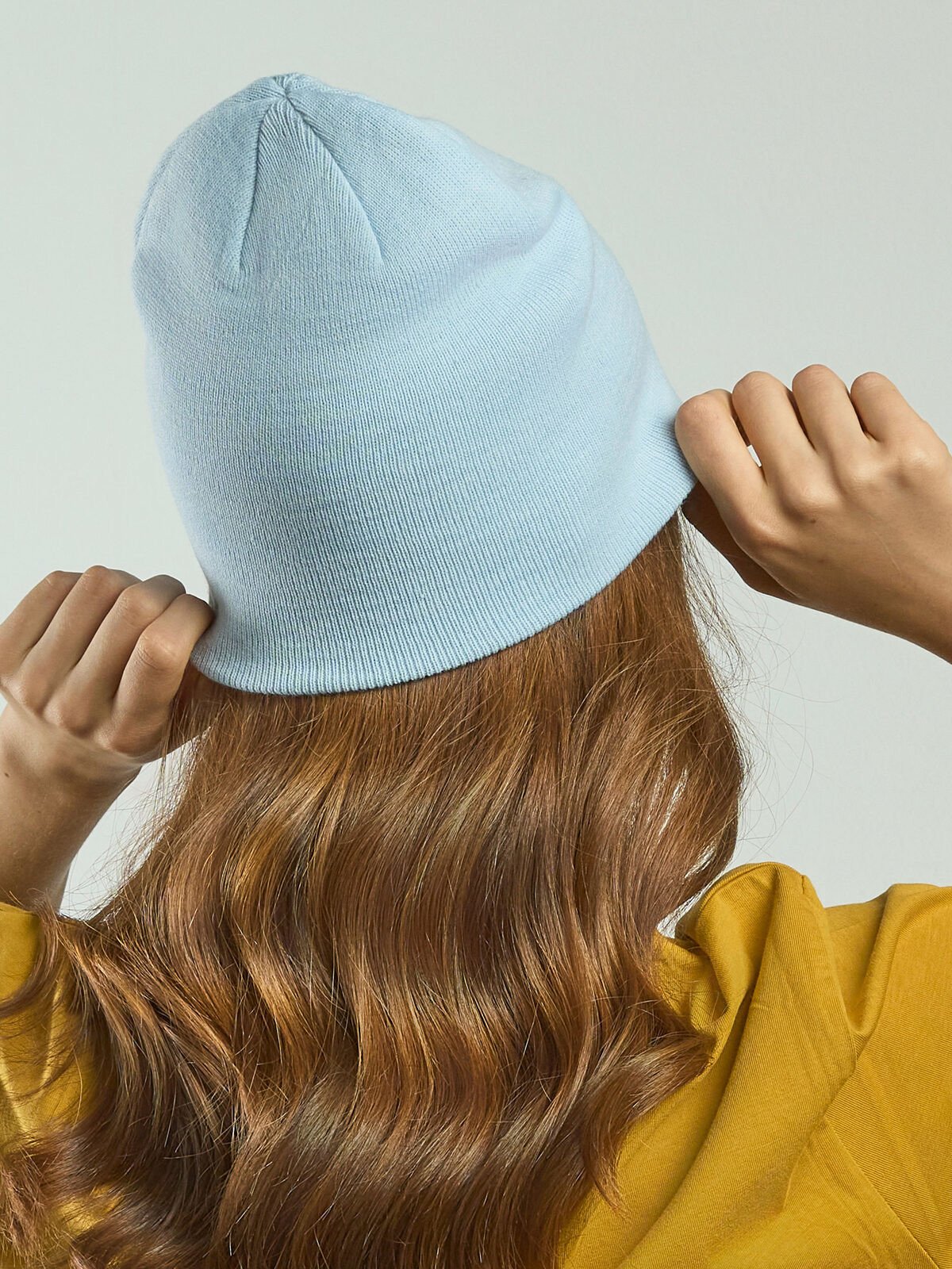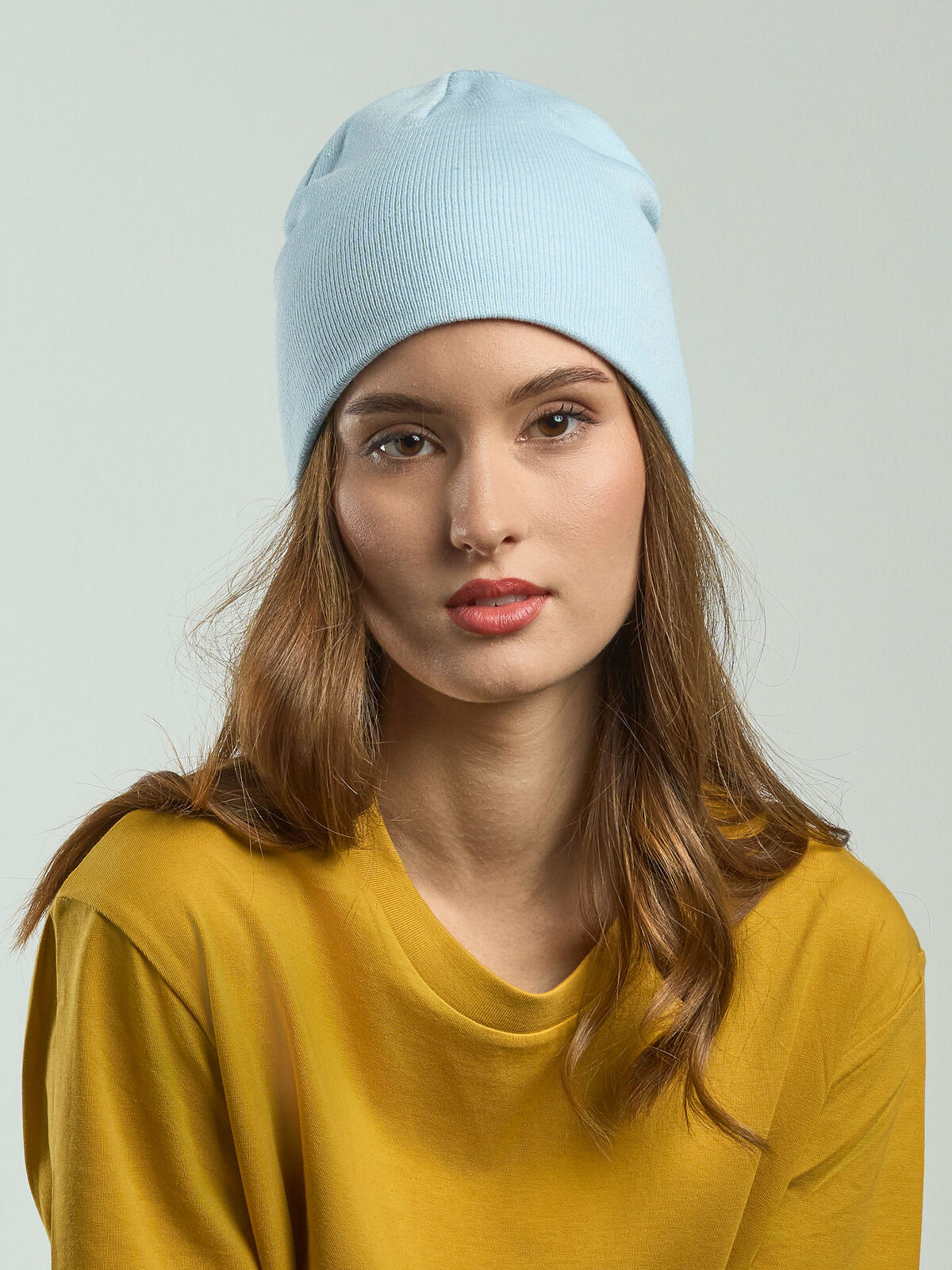 100% Polylana® . Double-layer knit beanie with a straight cut, fibers obtained from recycled plastic bottles.