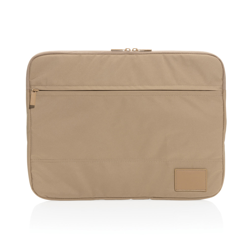 Zaščitite svojo tehniko in promovirajte svojo blagovno znamko z 14-palčnim ovitkom za prenosni računalnik Impact AWARE™—popolnim ekološko ozaveščenim poslovnim darilom. Ta funkcionalen in eleganten etui je zasnovan tako, da se prilega prenosnikom do 14 palcev in nudi zanesljivo vsakodnevno zaščito zahvaljujoč trpežni konstrukciji iz 300D recikliranega poliestra (rPET) in neoprena. S prostornim sprednjim žepom za osnovne potrebščine je idealen za profesionalce na poti.