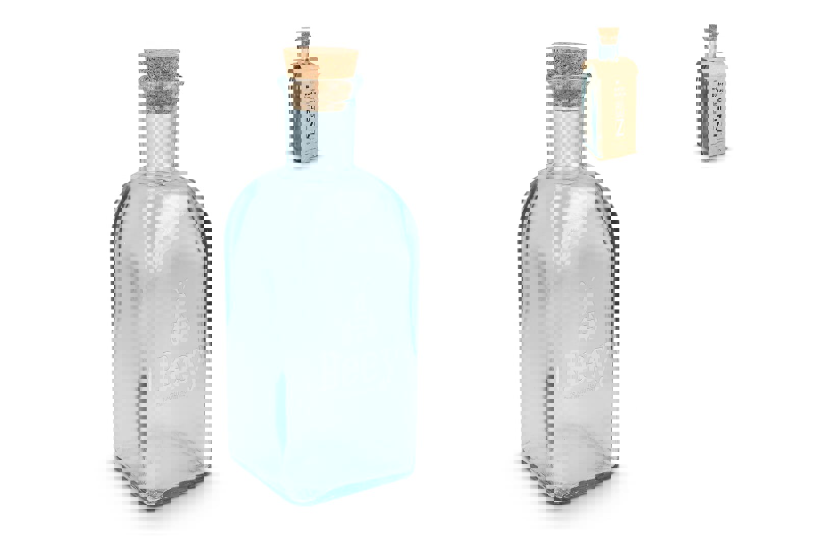 InSideOut Square Recycled Glass Water Bottle ReuuZ with Cork Stopper 500ml