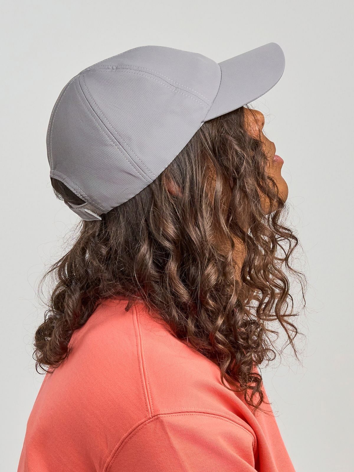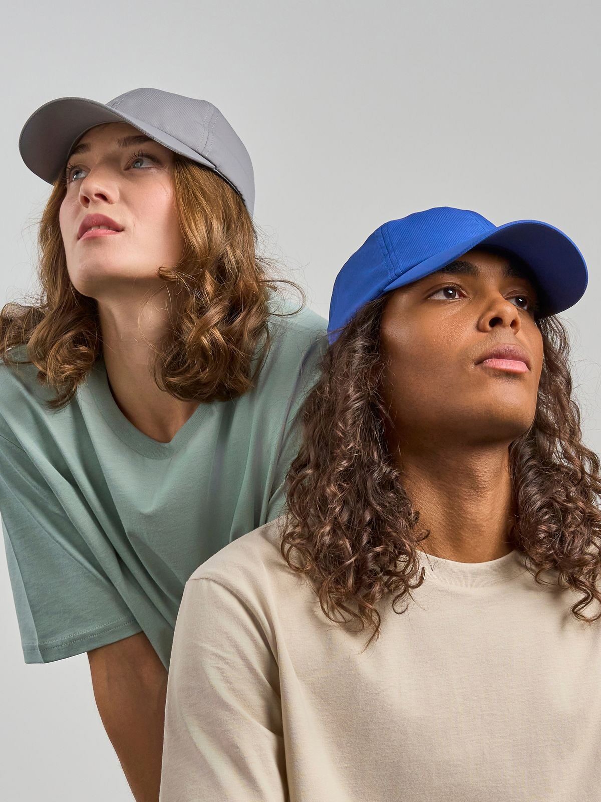 100% recycled polyester. 6-panel hats, including two unstructured front panels, hook-and-loop closure, recycled plastic visor interior.