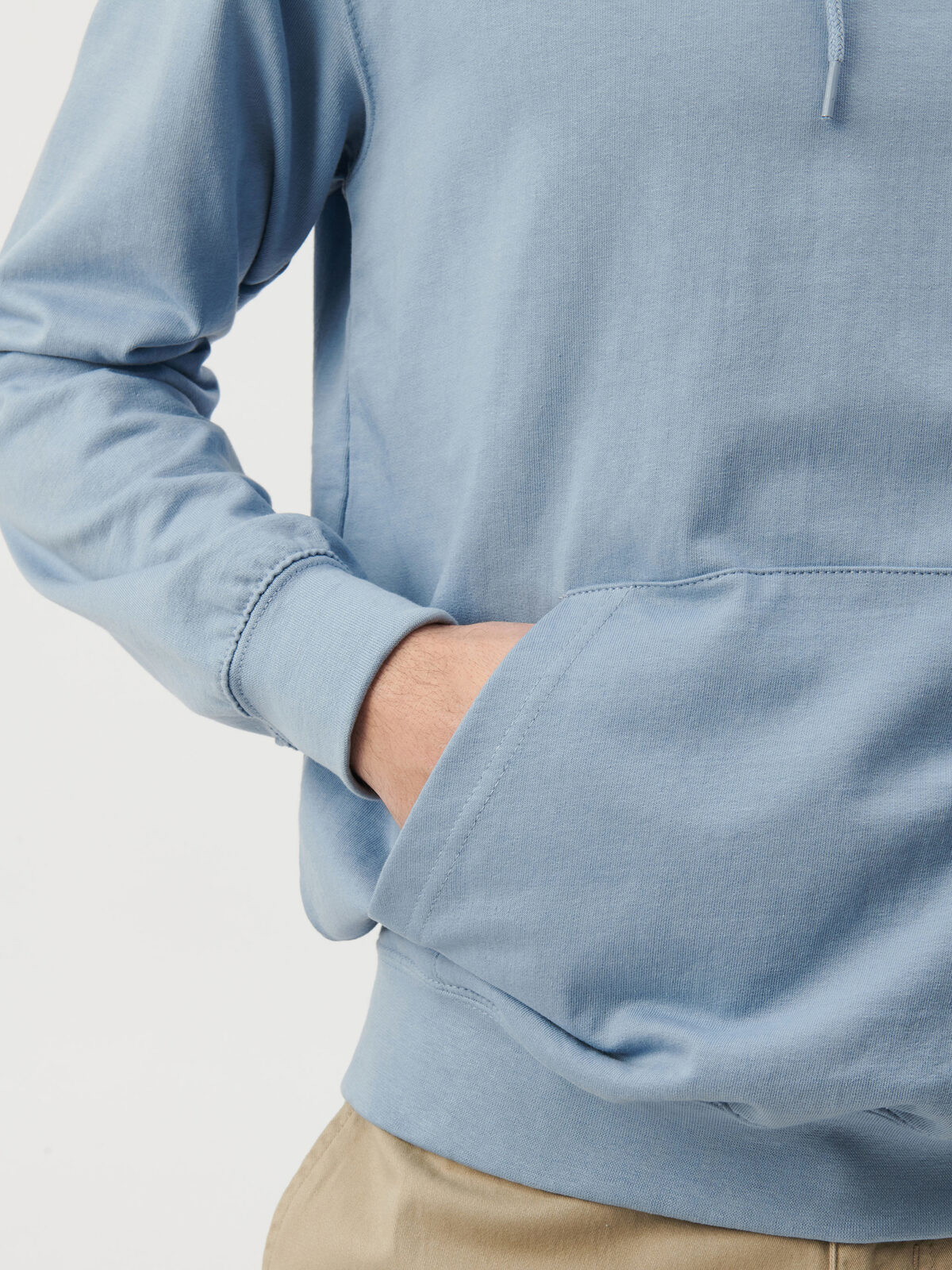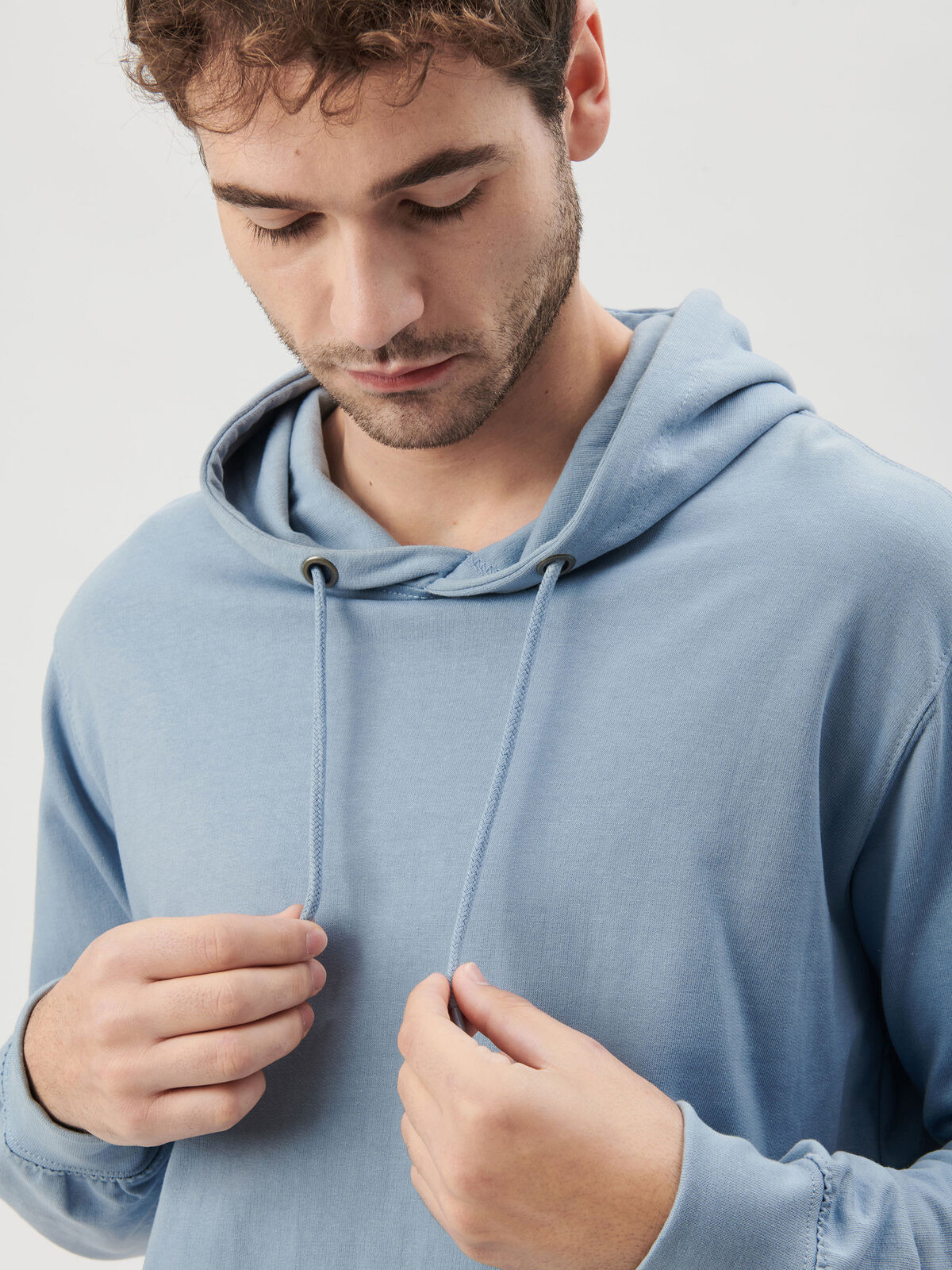 Ta pulover s kapuco prikazuje premišljene oblikovne podrobnosti, kot je notranjost iz mehko krtačenega flisa, dolg rokavi in ​​dvoslojna kapuca z 1x1 rebri na manšetah in robu. S certifikatom OEKO-TEX® STANDARD 100 in preverjeno trajnostjo prek sledilne naprave AWARE™ in tehnologije veriženja blokov lahko vaše stranke izsledijo okolju prijazen izvor oblačila s preprostim skeniranjem vgrajene kode QR.