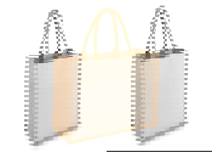 Bag made with natural cotton canvas front and back panels, combined with jute sides and bottom — all 320gsm. Fitted with colour-matched cotton handles for a cohesive, natural look. Oeko-Tex® certified. Ideal for retail, events, or everyday use.