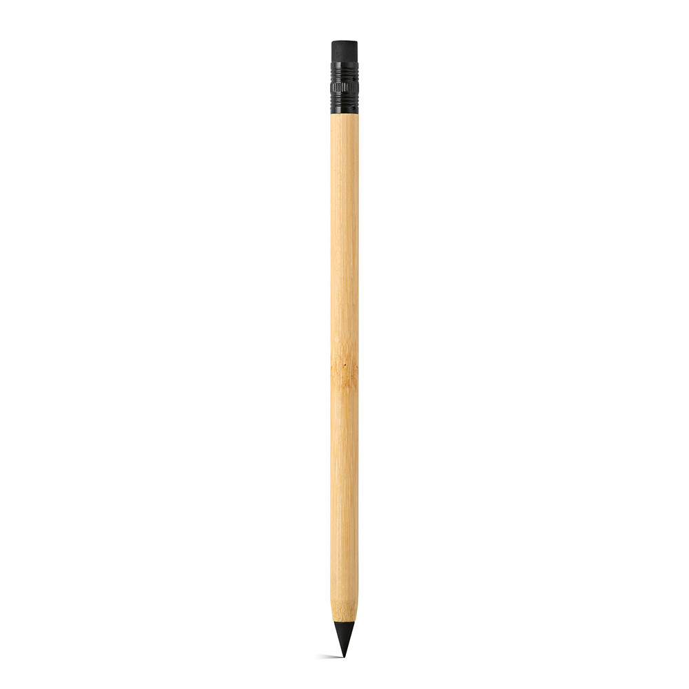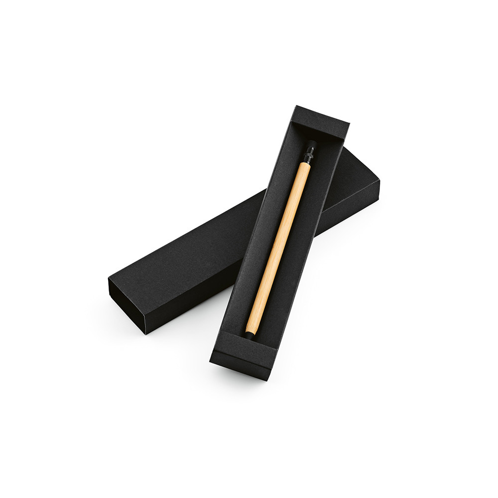 Kerouac nečrnilni svinčnik z bambusovim ohišjem. Neskončen pisalni pripomoček z radirko, v reciklirani črni papirnati darilni škatli.