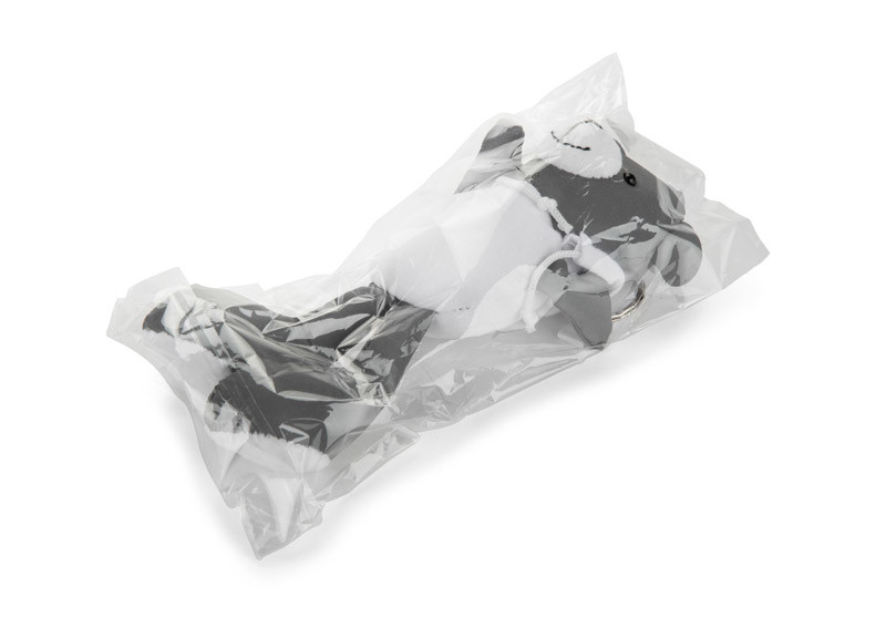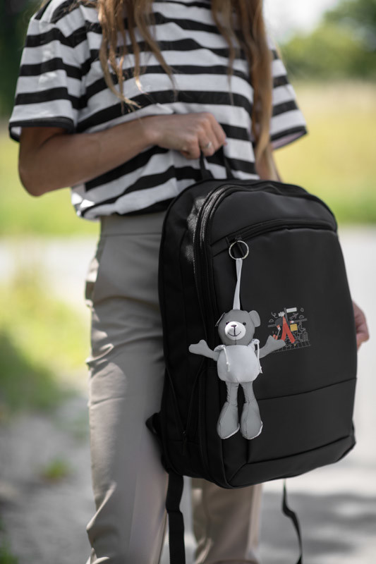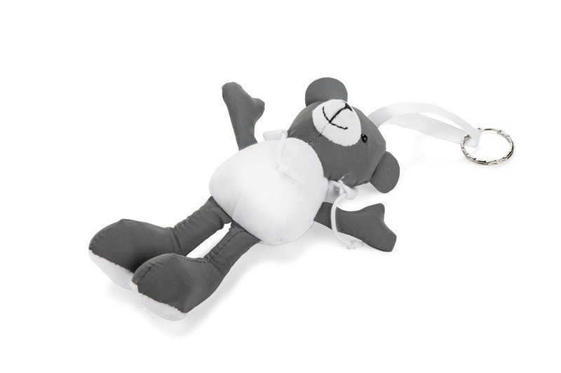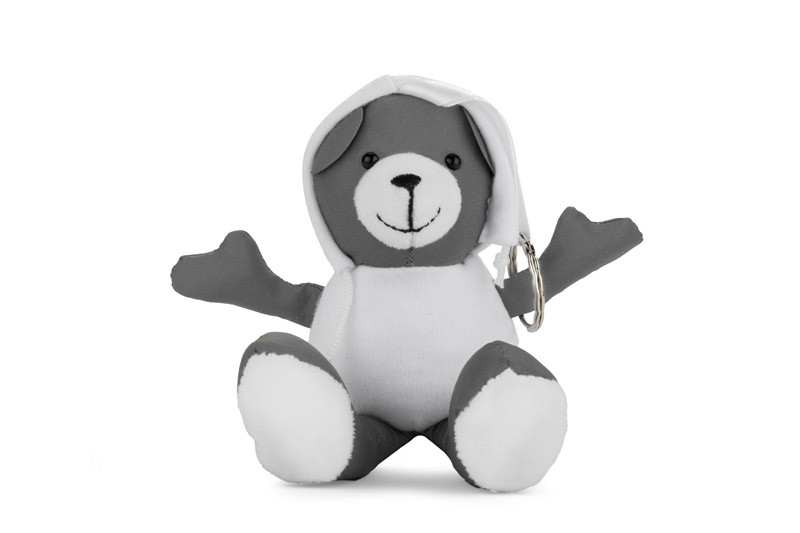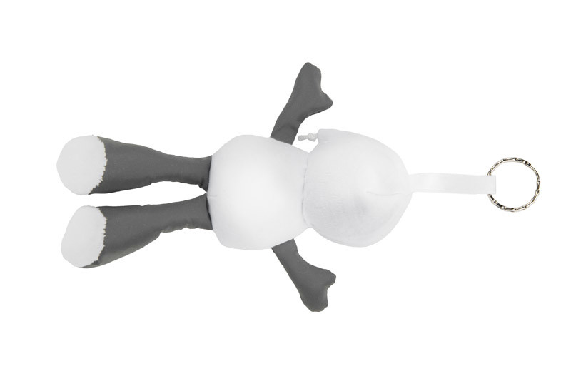 TED is a pleasant promotional keyring in the shape of a teddy bear in a jumper. The head, arms and legs are made of a glossy material that reflects light and attracts the eye. A white polyester ribbon is sewn to the teddy bear, ending in a metal ring that allows it to be attached to a rucksack, bag or keys. A friendly and functional accessory - ideal for seasonal promotional campaigns.