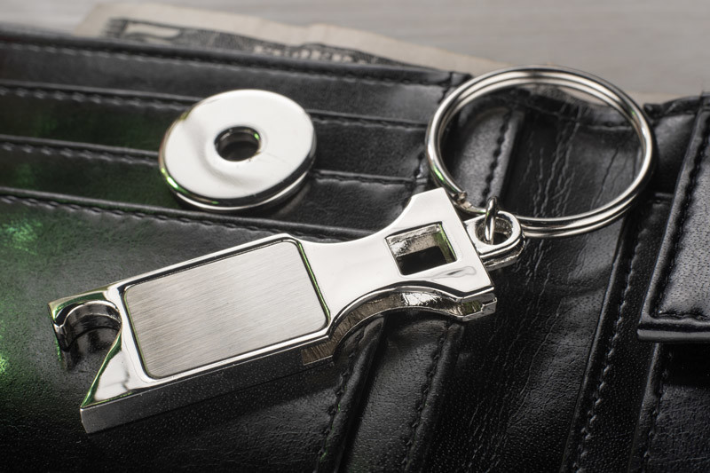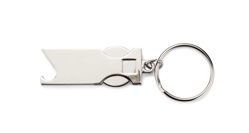 The SPRITI metal keyring is an elegant and durable advertising gadget, combining the function of a bottle opener and a shopping trolley token.