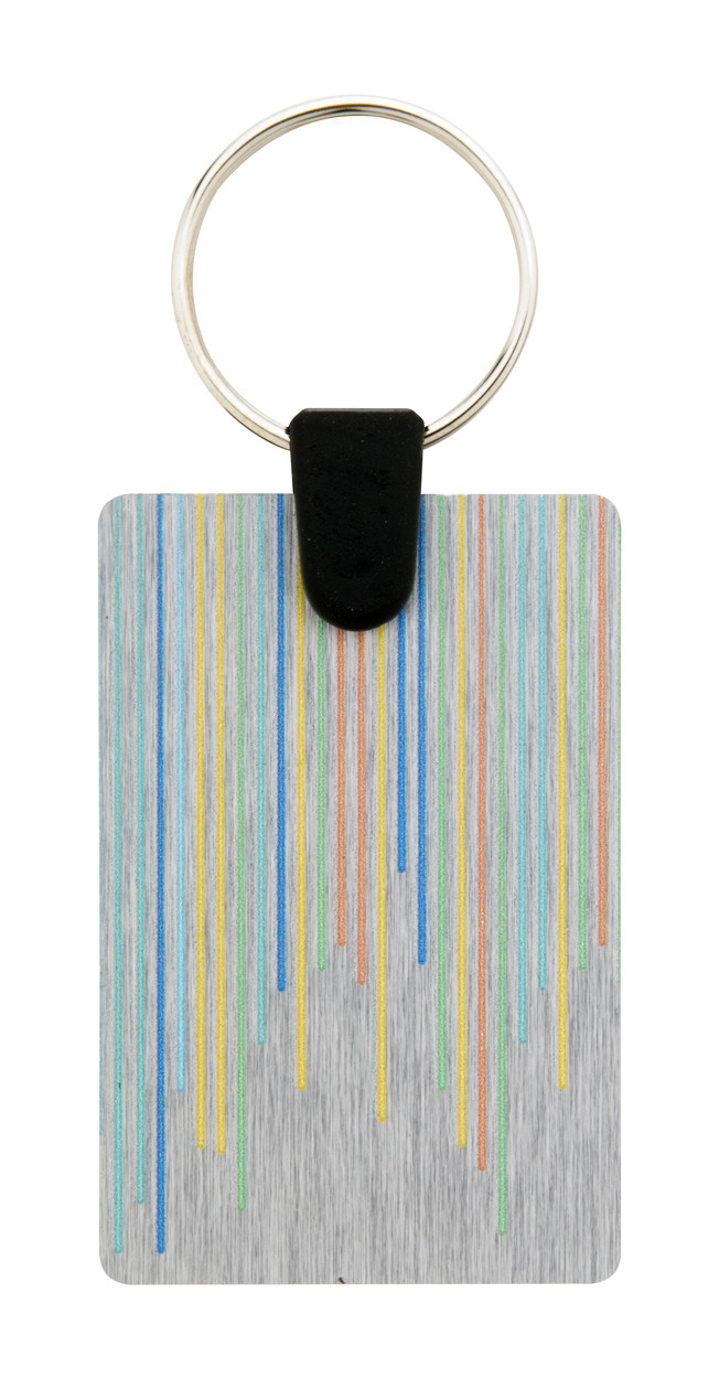 Rectangle shaped, brushed aluminium composite keyring with full colour printing. Price includes UV LED printing on one side. MOQ: 100 pcs.