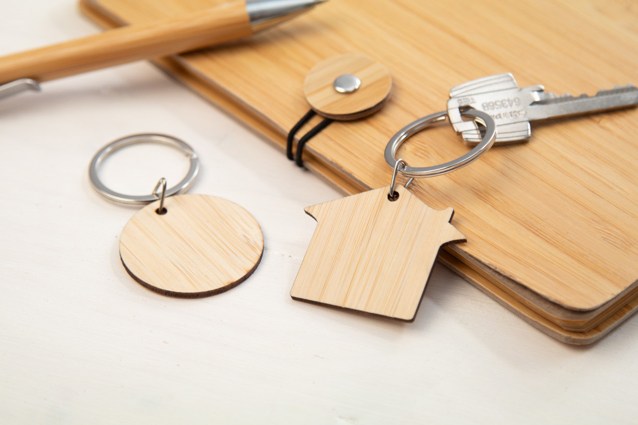 Dodajte svoji blagovni znamki pridih brezčasne preprostosti z obeskom za ključe okrogle oblike. S svojim elegantnim in minimalističnim dizajnom je ta promocijski dodatek odličen način, da vaše ime ostane v rokah vaših strank – dobesedno.