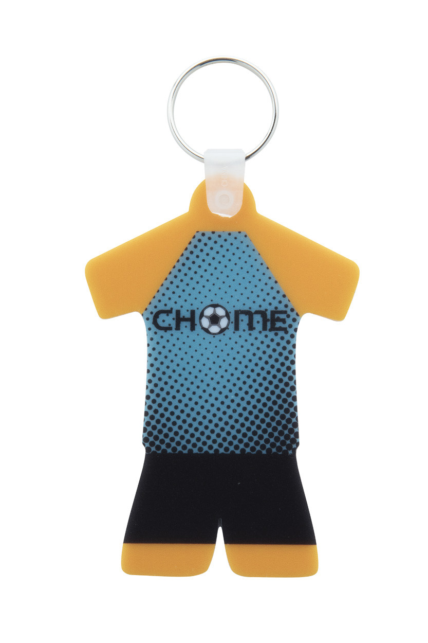 Sport dress shaped plastic keyring with full colour printing on both sides. Price includes UV LED printing. MOQ: 100 pcs.