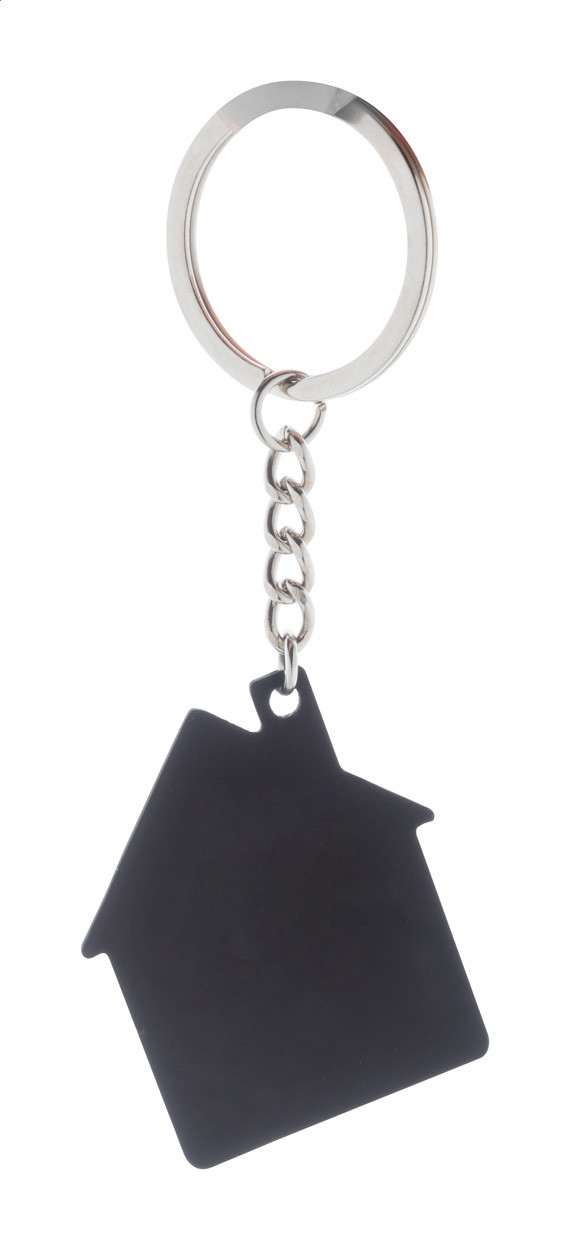 House shaped, recycled stainless steel keyring with rubberized finish. With special coating for mirror laser engraving.