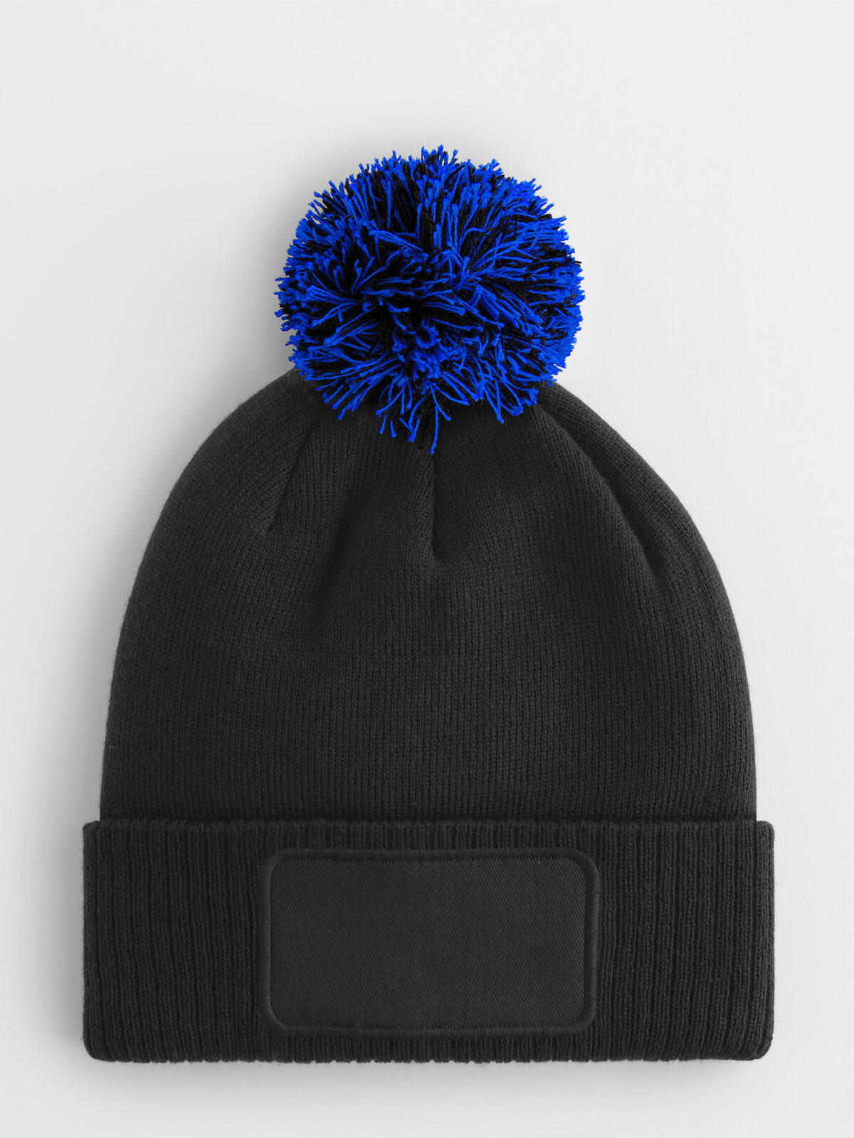 55% recycled polyester, 45% acrylic. This accessory combines style and functionality, with a double-layer ribbed knit that guarantees warmth, durability, and long-lasting comfort. The two-tone pompom adds a distinctive detail, while the cotton twill patch provides an ideal surface for customization and decoration. Thanks to the removable label, you can easily personalize the product.