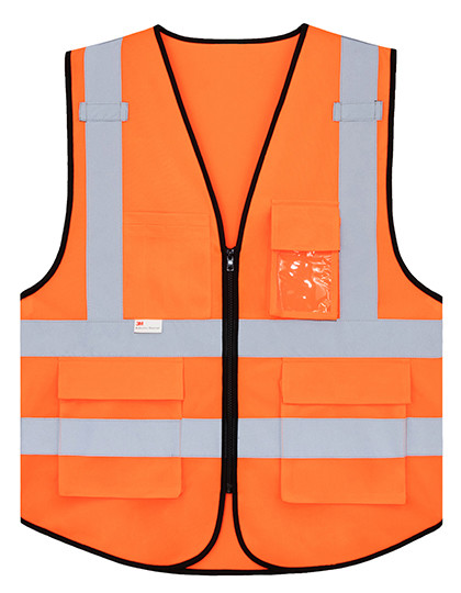Opremljen z dvema vidnima 5 cm širokima odsevnima trakovoma 3M® okoli telesa in ramen, ta jopič zagotavlja 360-stopinjsko vidljivosttudi v slabih svetlobnih pogojih. Visokokakovostna YKK zadrga po celotni dolžini omogoča varno zapenjanje, medtem ko je zaradi številnih žepov – vključno z žepom za pametni telefon, žepom za identifikacijo, držalom za pisalo in zanko za radio – pomembna večnamenska oprema. Z navodili, vključenimi v vseh uradnih jezikih EU in sledenjem črtne kode EAN, je tudi priročno posamezno pakiran za distribucijo.