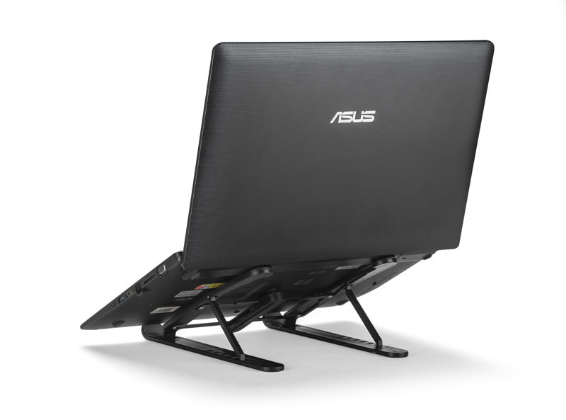 The FOLD laptop stand provides greater working comfort and improves cooling of the device. The accessory has a light, yet solid structure that can be folded and adjusted. It allows you to lift the device at various angles, which translates into improved ergonomics and maintaining a healthy position while working on a laptop or tablet. It has silicone anti-slip elements that increase the comfort of use. Provides a stable hold for devices up to 15 inches in size. The set includes a bag made of non-woven fabric.