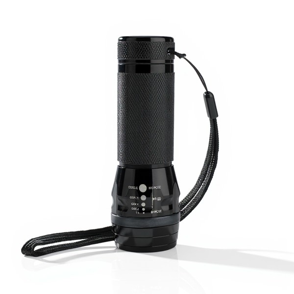 Osvetlite svojo blagovno znamko z aluminijasto svetilko Quattro – elegantnim in zelo funkcionalnim poslovnim darilom, ki zasije tako vizualno kot praktično. Ta svetilka, izdelana iz trpežnega aluminija in del ugledne Zbirke XD, ima močan žarek, ki ga ustvarja 9 belih LED, ki zagotavljajo jasno in močno svetlobo v vsaki situaciji.