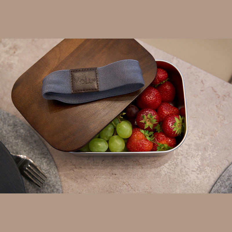 Crafted from recycled stainless steel, this MoLu lunchbox combines elegant design with practical functionality. Offering a generous capacity of 1,000 ml, it provides ample space for your meals. The lid, made from premium acacia wood, imparts a sophisticated appearance and can be securely fastened with a robust elastic band to keep contents fresh and safe. It perfectly merges style and utility, making it an ideal promotional gift or a practical accessory for everyday use. Presented in exclusive gift packaging with a 2-year warranty.