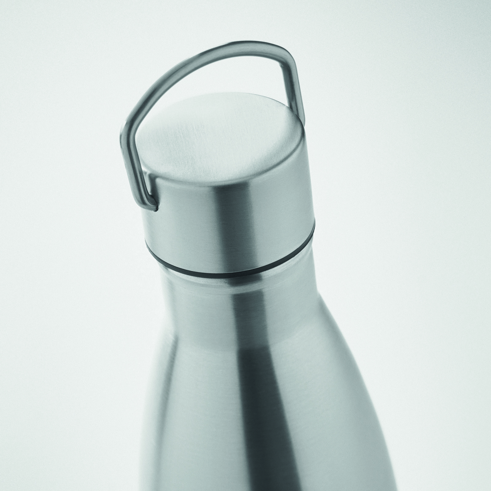 Naredite trajen vtis z elegantno, ekološko osveščeno dvostensko steklenico Manoa – popolnim promocijskim darilom, ki vašo blagovno znamko uskladi s trajnostjo in sodobnim dizajnom. Izdelana iz 90 % recikliranega nerjavečega jekla in zgrajena z izolirano vakuumsko strukturo, je ta vrhunska 500 ml steklenica zasnovana tako, da ohranja pijačo vročo ali hladno več ur.