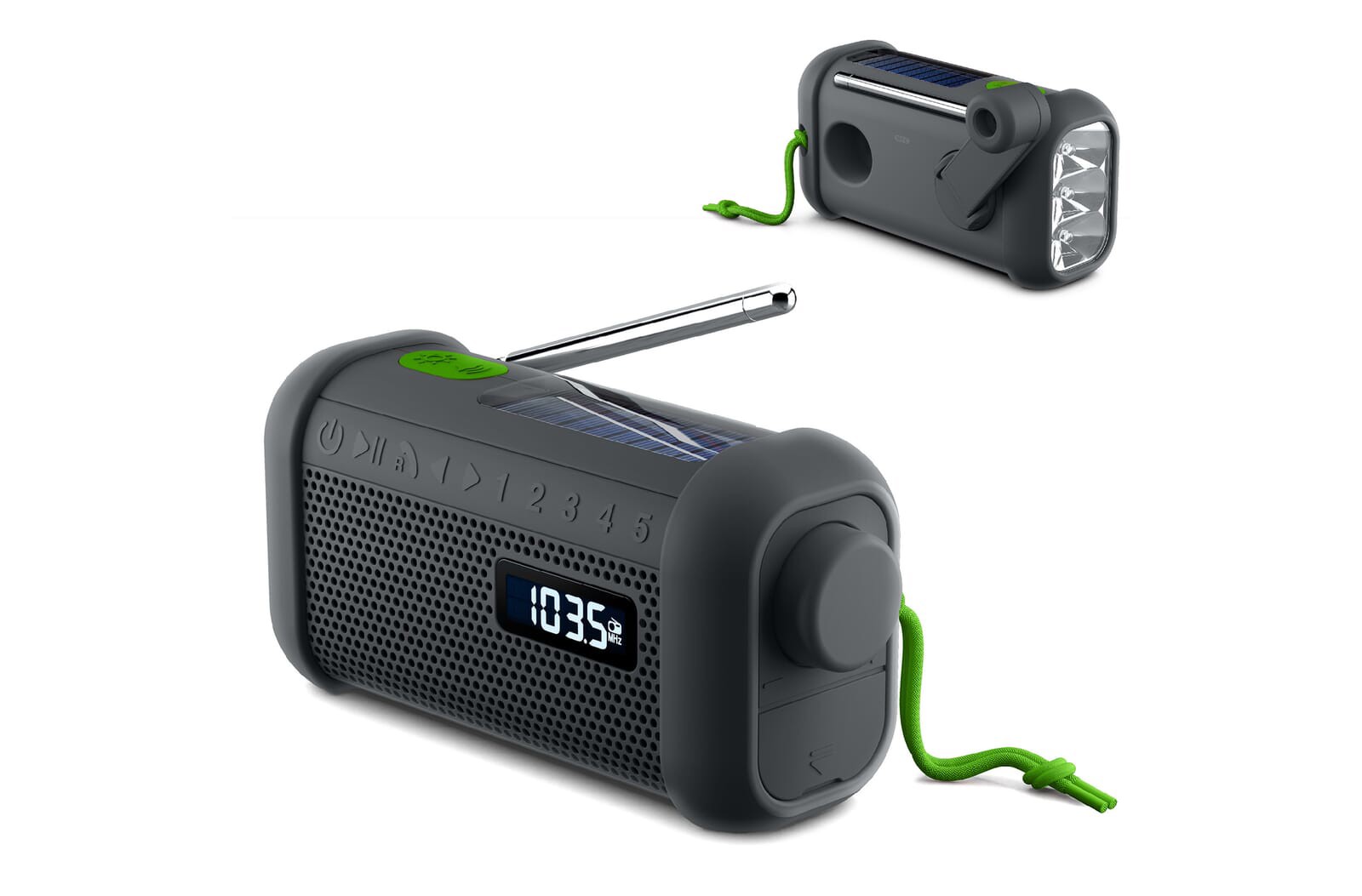 Iščete vsestransko in nepozabno poslovno darilo? MH-08 Muse Radio Bluetooth zvočnik je rešitev vse v enem, ki združuje tehnologijo, trajnost in uporabnost v kompaktnem dizajnu. Ta večnamenska naprava ponuja tri možnosti polnjenja – sončno energijo, ročno navijanje in polnjenje prek USB-ja – kar zagotavlja, da je pripravljena na akcijo kadarkoli in kjerkoli.