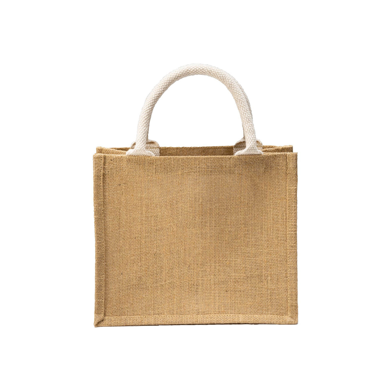 Kompaktna, okolju prijazna in elegantna – mini nakupovalna torba iz jute z bombažnim žepom in ročaji je popoln dodatek za vaše naslednje poslovno obdarovanje ali promocijsko kampanjo. Ta mini torbica, izdelana iz trpežne jute, združuje trajnost in praktičnost, zaradi česar je premišljeno in impresivno darilo.