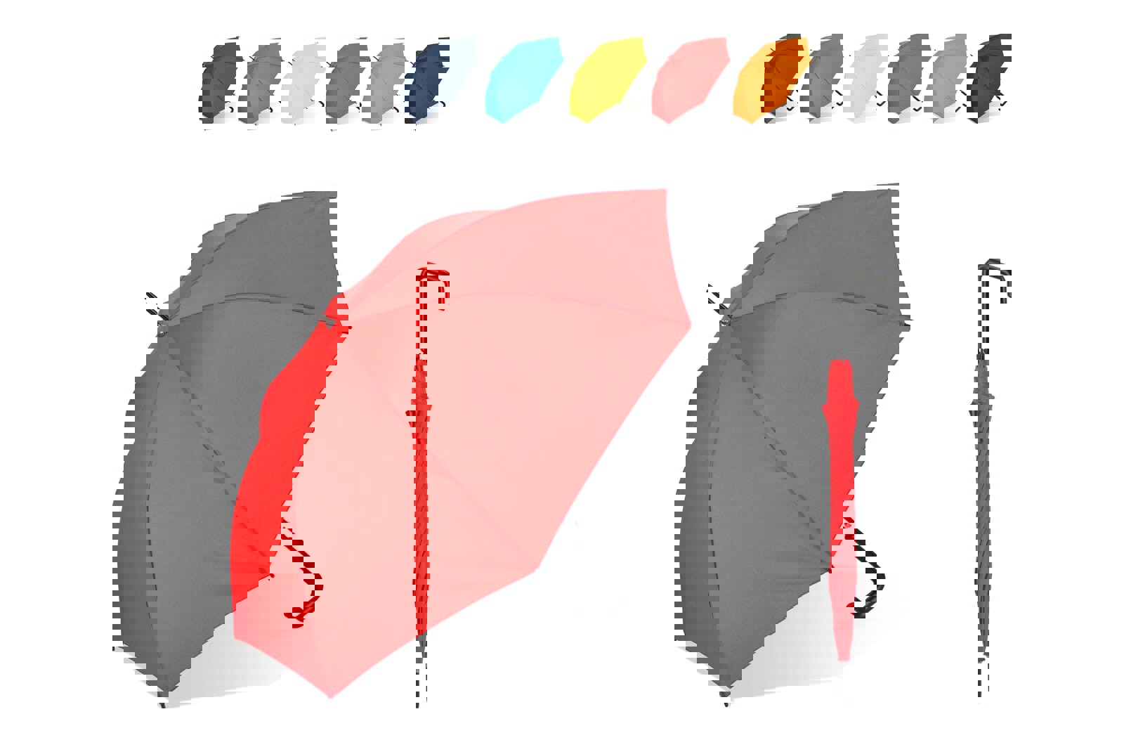 This 23" hook umbrella features our unique ergonomic handle with a square design and rounded edges for a better grip. It has an auto open function for convenience and a durable fibreglass frame, designed for reliable performance in rainy conditions.