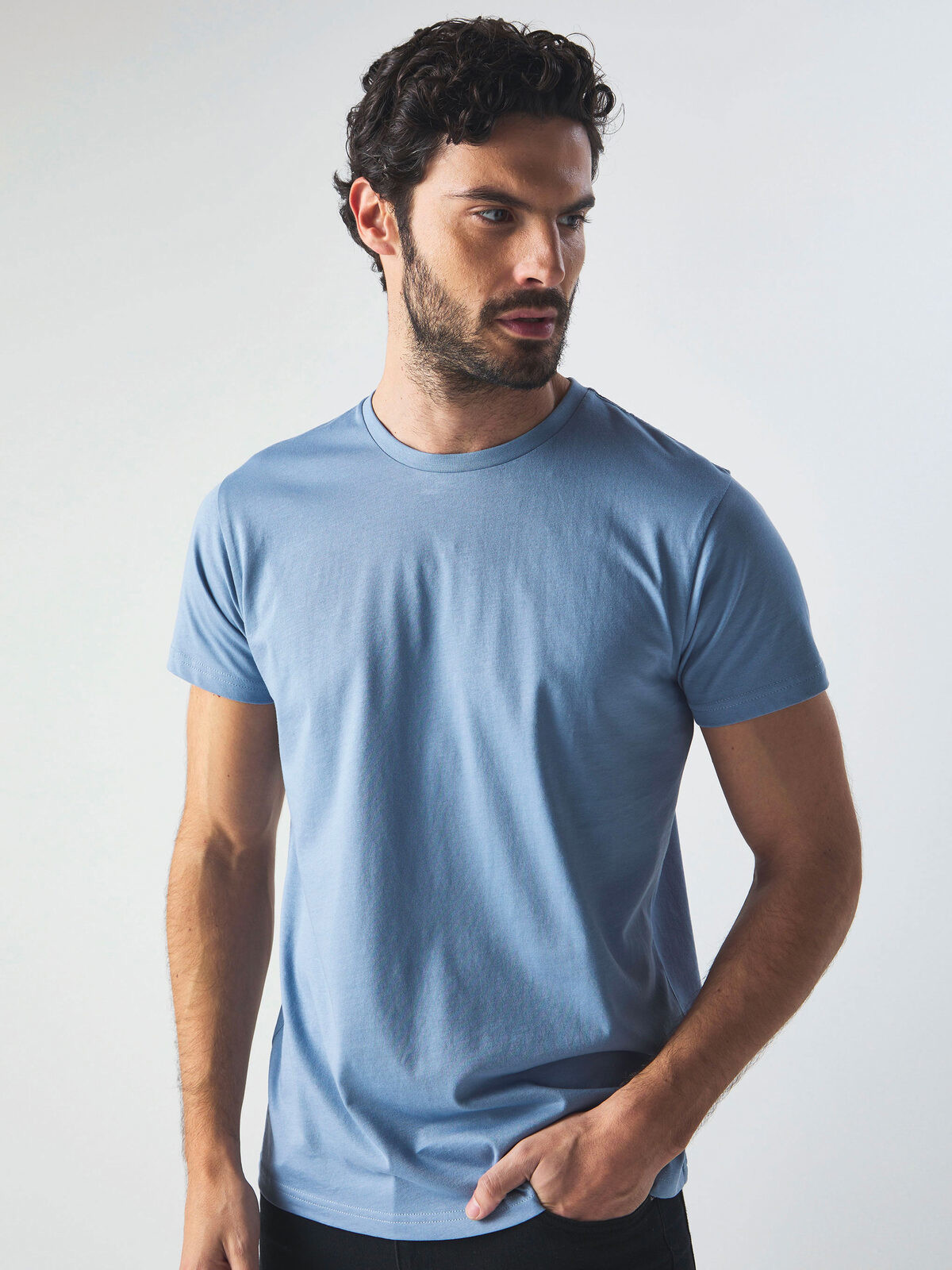 100% organic cotton in conversion. Short-sleeved T-shirt made from eco-friendly cotton, crew neck with reinforcement tape and soft edging, structure with side seams, modern fit, soft fabric treated with enzymes. Woven size label at neck and tear-off side label with logo, composition and washing instructions. Composition Grey Heather: 90% organic in conversion cotton, 10% viscose.
