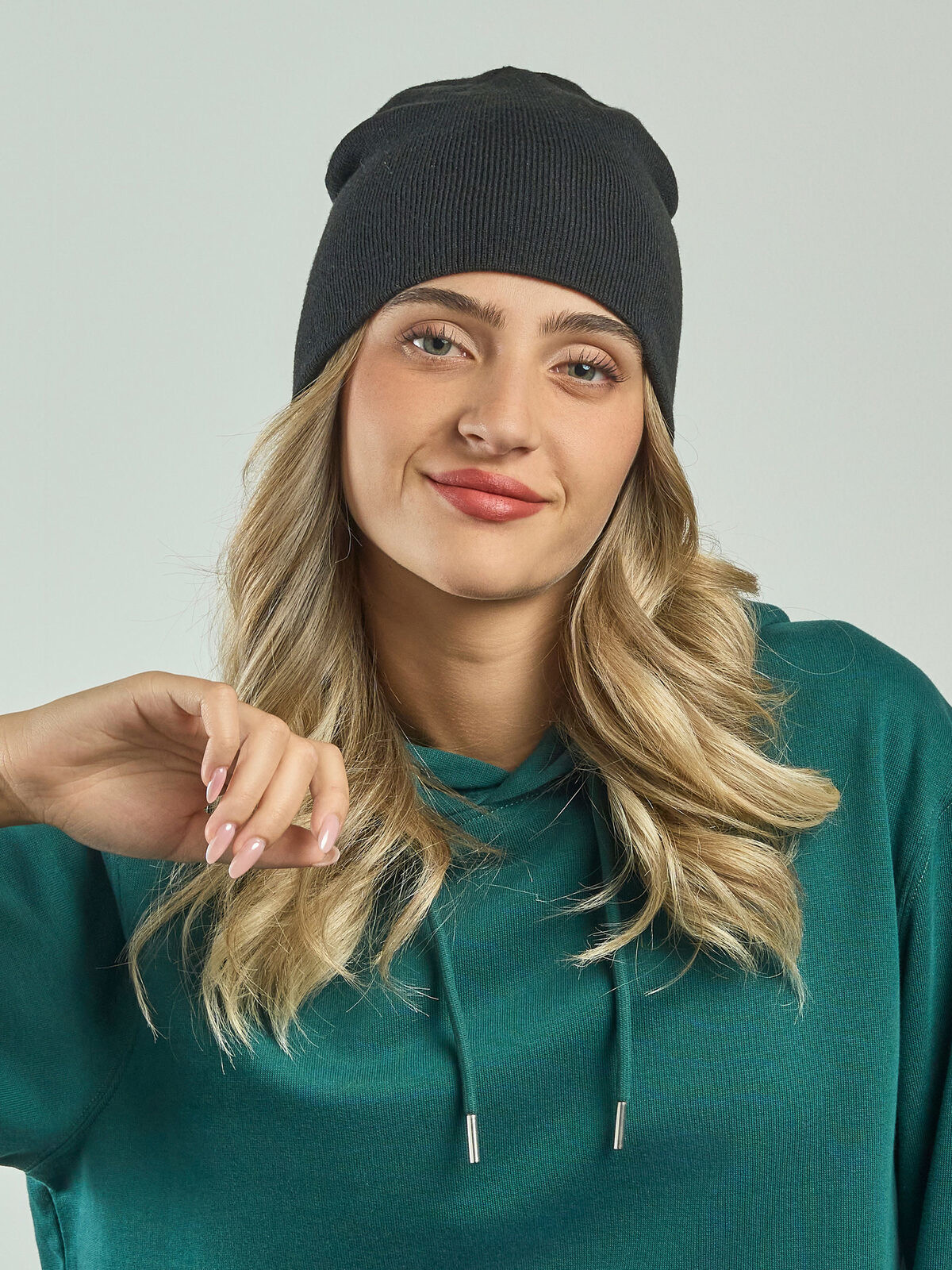 100% recycled polyester yarn. Beanie, recycled polyester, double layer. Comfortable beanie in recycled polyester yarn. Double layer and circular machine finish. Soft hand feel for outdoor activities and everyday use. Weight: 60g. Removable label.