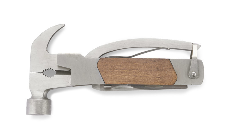 HAMMER is a novelty among multitools - a regular pliers with shape and functions of a hammer. Other features are: knife, flat-blade screwdriver, cross screwdriver, bottle opener, saw, nail file, wire cutter. Irreplaceable for small fixes. Multitool packed in a practical case with a loop to attach the item to belt.