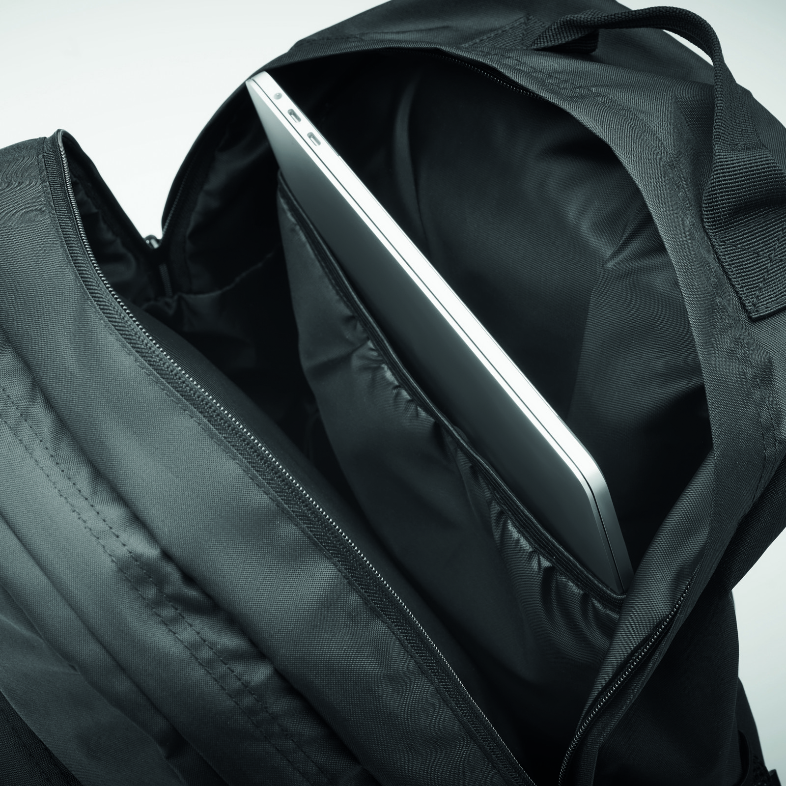 Eleganten, trajnosten in zelo funkcionalen – nahrbtnik za prenosni računalnik 300D RPET Valley Backpack je primeren za popolno poslovno ali promocijsko darilo. Ta nahrbtnik, izdelan iz recikliranih materialov (RPET), ponuja fantastične okolju prijazne lastnosti, hkrati pa zagotavlja vsakodnevno uporabnost.