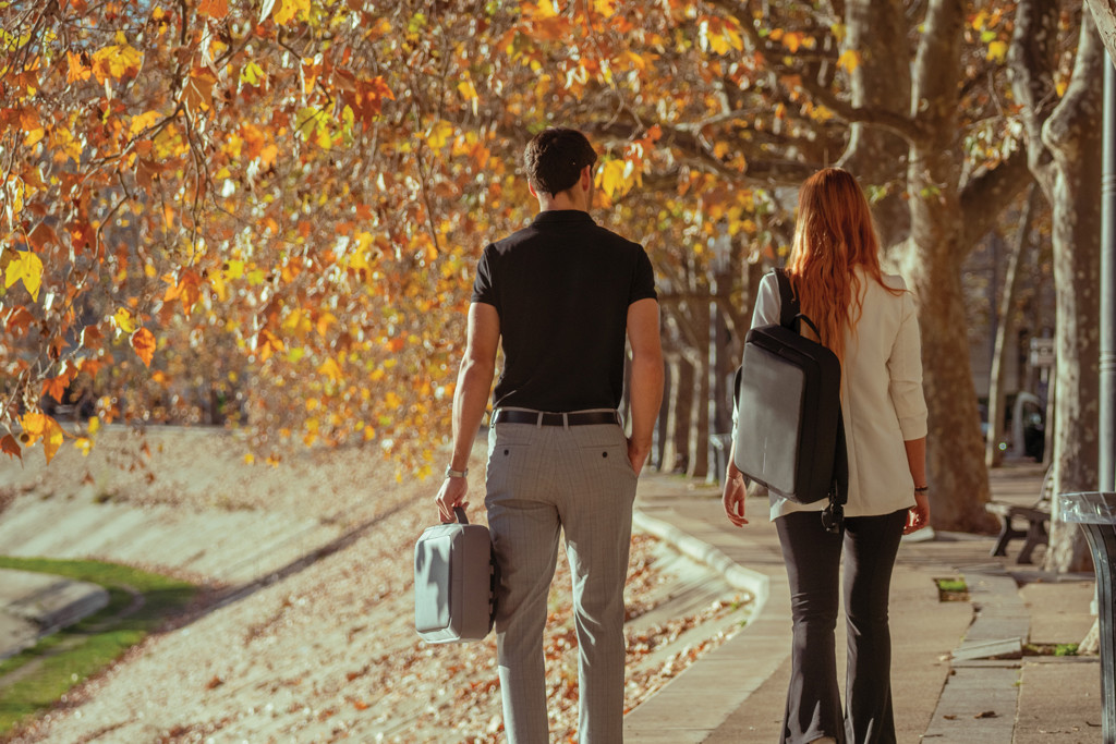 Ta nahrbtnik je zasnovan s skritimi zadrgami, zaščito pred urezninami in skritimi predelki, zato med vsakodnevnimi prevozi na delo in domov varuje dragocenosti. Vgrajena polnilna vrata USB zagotavljajo, da bodo naprave ves dan napajane. Ima pametno notranjo postavitev z oblazinjenimi rokavi za zaščito 13,3-palčnega prenosnika in tabličnega računalnika do 12,9-palčnega formata, ki ponuja profesionalno organizacijo v elegantnem formatu.