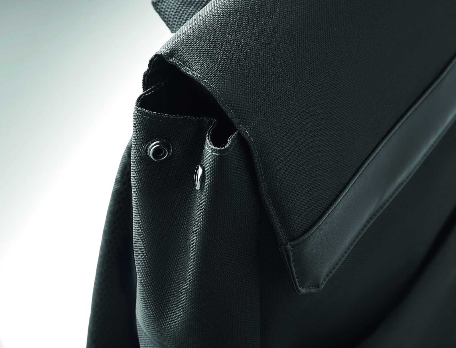 Njena izjemna lastnost je kombinacijska ključavnica, ojačana z jeklom, ki zavaruje glavni predal na zvitku in omogoča tudi zaklepanje torbe na fiksne predmete – kot nalašč za varno potovanje v prometnih okoljih. Skriti žepi, zaščiteni z RFID na zadnji plošči in naramnici varujejo vaše osebne podatke, medtem ko notranji podloženi predelki podpirajo prenosnike do 15,6" in tablične računalnike do 12,9".