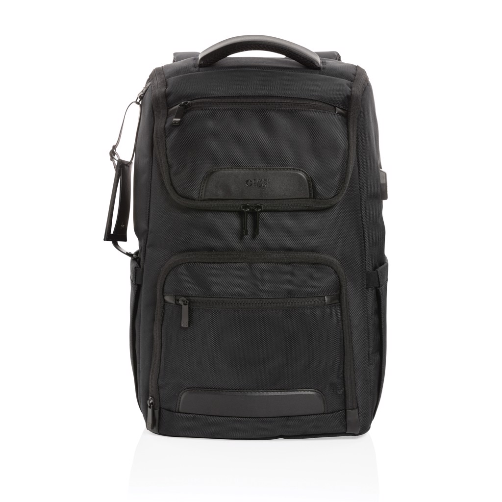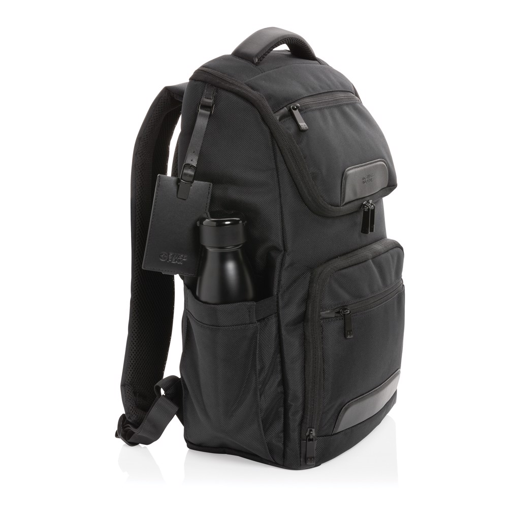 Povzdignite svoje poslovno obdarovanje z nahrbtnikom za prenosnike Swiss Peak AWARE™ RPET Voyager 15,6"— popolna mešanica inovativnosti, trajnosti in vrhunskega dizajna. Ta prefinjen nahrbtnik je izdelan iz vzdržljivega 1680D recikliranega poliestra z elegantnimi PU detajli in je zasnovan za sodobnega profesionalca na svetu. premakniti.
