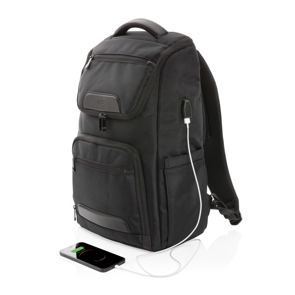 Ta nahrbtnik je zasnovan s skritimi zadrgami, zaščito pred urezninami in skritimi predelki, zato med vsakodnevnimi prevozi na delo in domov varuje dragocenosti. Vgrajena polnilna vrata USB zagotavljajo, da bodo naprave ves dan napajane. Ima pametno notranjo postavitev z oblazinjenimi rokavi za zaščito 13,3-palčnega prenosnika in tabličnega računalnika do 12,9-palčnega formata, ki ponuja profesionalno organizacijo v elegantnem formatu.