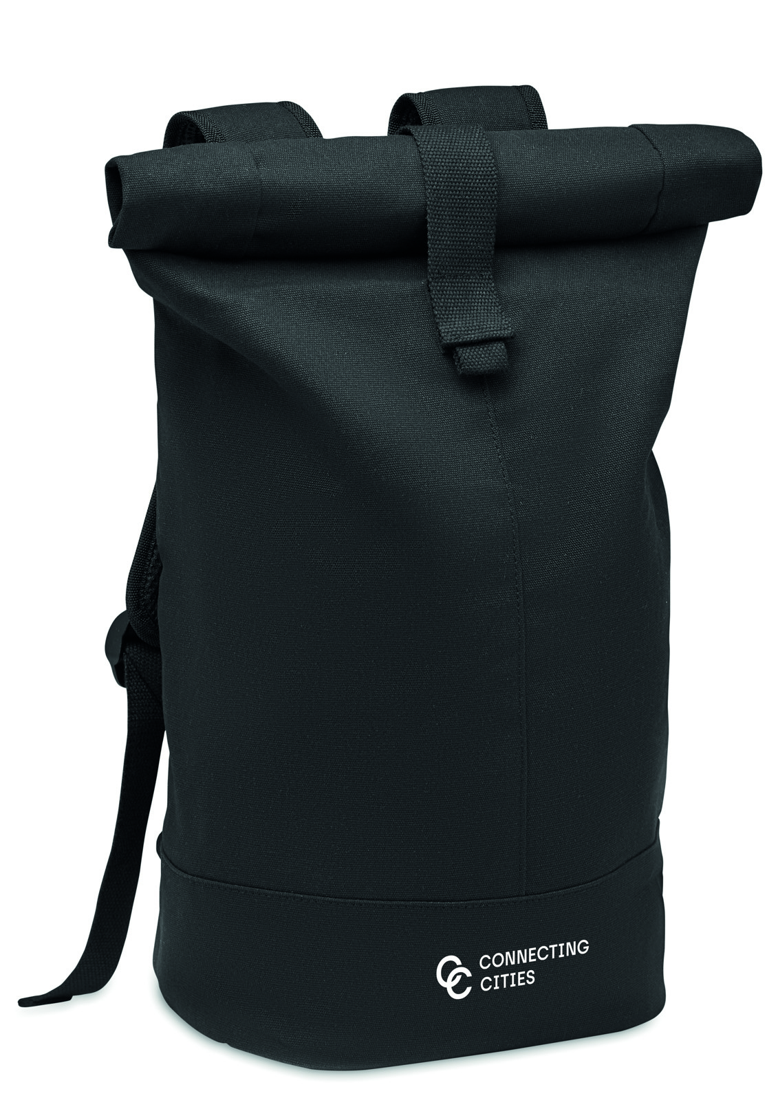 Nahrbtnik Zurich Roll Rolltop je prefinjena mešanica sloga, praktičnosti in trajnosti, zaradi česar je idealna izbira za poslovno ali promocijsko darilo. Izdelan iz visokokakovostnega 340 g/m² pranega platna in podložen z okolju prijaznim RPET 210D materialom, ta nahrbtnik govori tako o prefinjenosti kot odgovornosti.