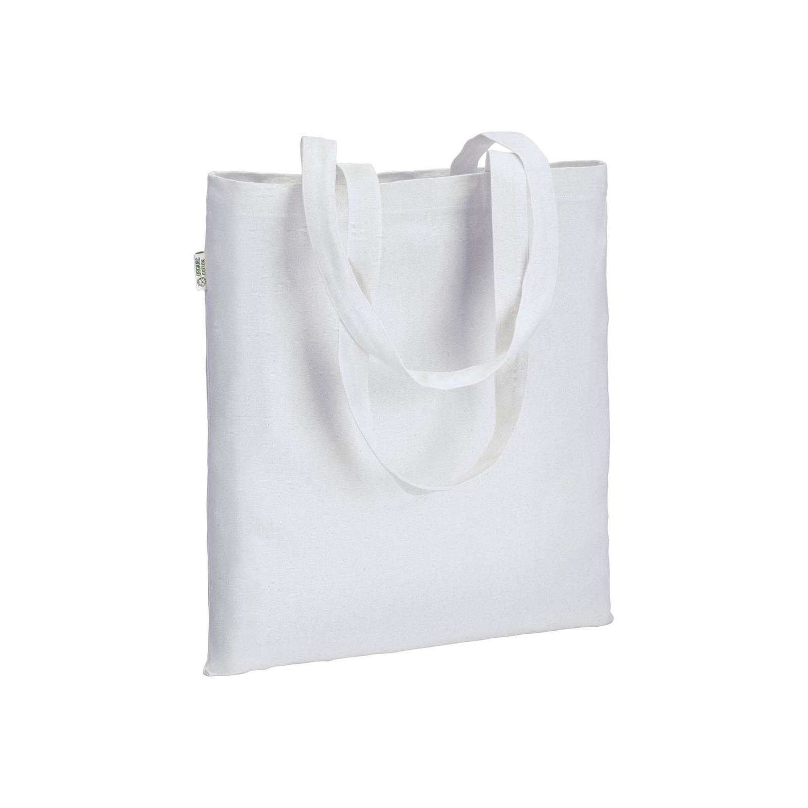 Nakupovalna vrečka iz organskega bombaža, 220 g/m2, dolgi ročaji - Bela
