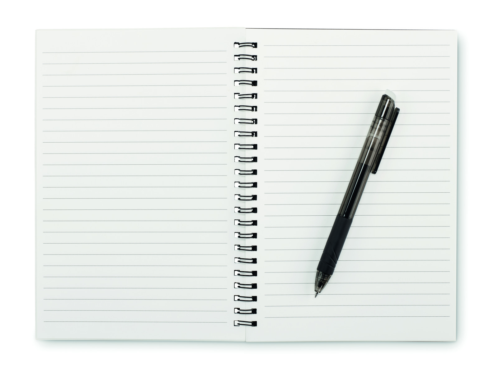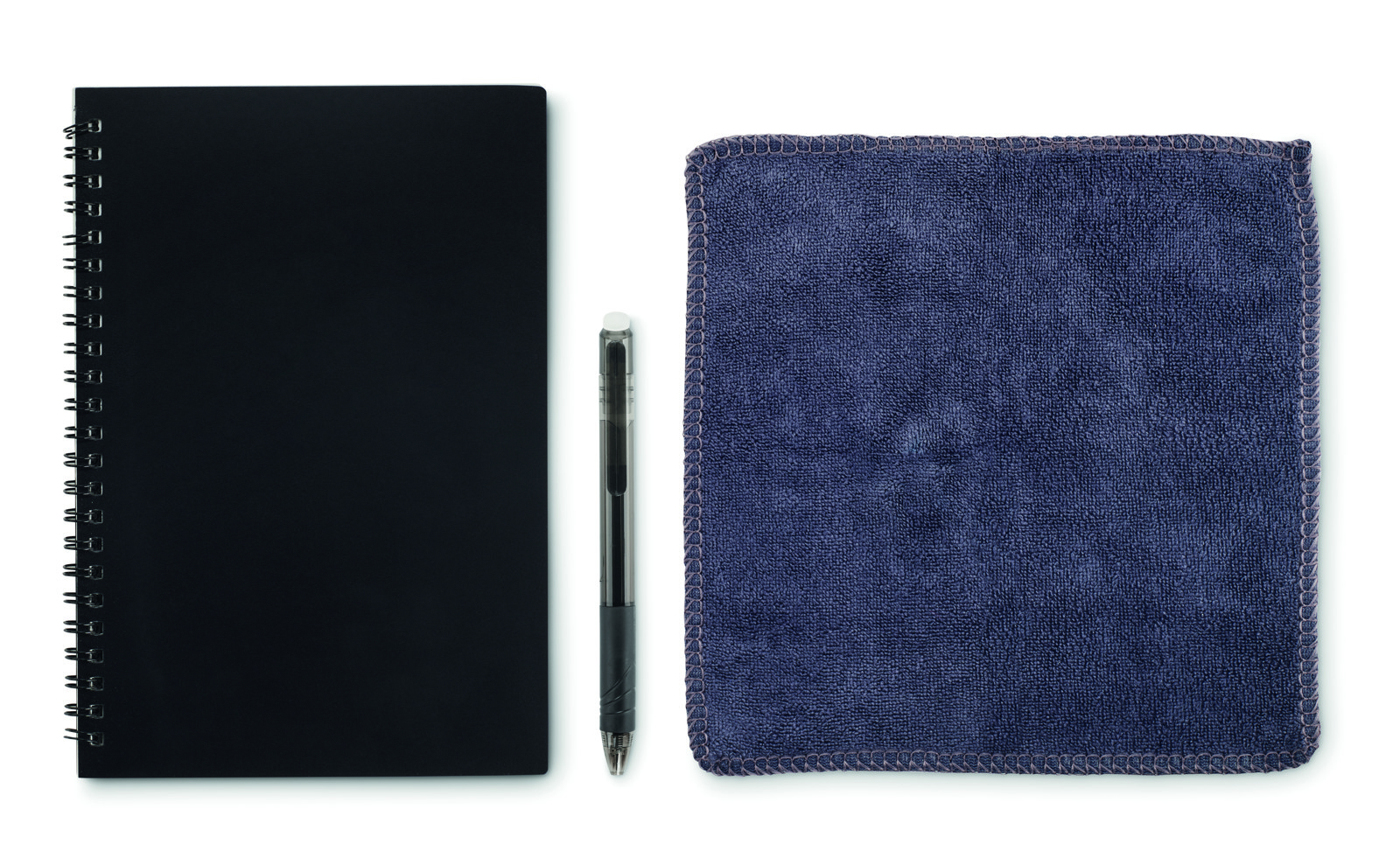 Povzdignite svojo blagovno znamko z izbrisljivim zvezkom A5 Nobuuk – pametnim, ekološko ozaveščenim poslovnim darilom, ki zagotavlja funkcionalnost in inovativnost. Ta zvezek za večkratno uporabo ima robustno platnico iz polipropilena in vsebuje 36 črtastih strani (18 listov) iz 100 % recikliranega papirja, ki je popolnoma v skladu s trajnostnimi vrednotami.