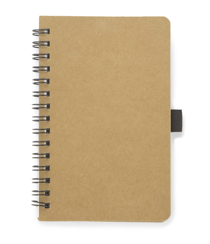 Classic spiral notebook with a brown paper cover with a place for a pen. The pages in the notebook are made of stone paper. This paper is extremely durable and resistant to moisture. It has 60 lined sheets, A6 format. Packed in a biodegradable bag.