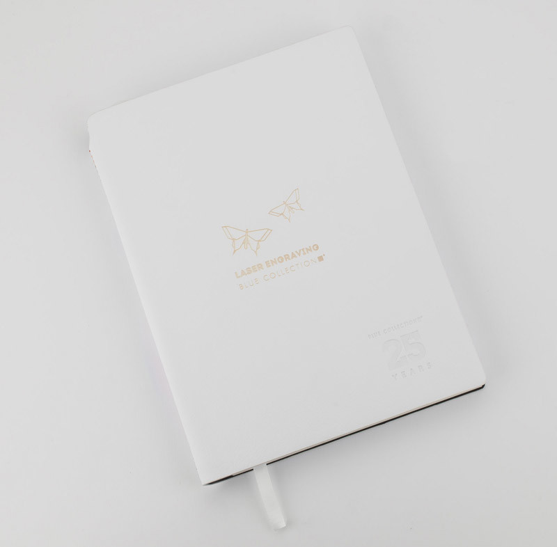 Zvezek A5 s 160 stranicami, obloženimi s smetano, z 80 g / m2 papirja. Sprednji pokrov ima prilagodljiv žep za telefon, žep za pisalo in večji žep za rokave za dokumente. Telefonski žep je širok 8 cm, kar ustreza iPhone 7 plus.