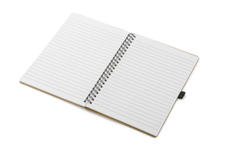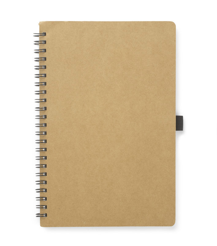 Classic spiral notebook with a brown paper cover with a place for a pen. The pages in the notebook are made of stone paper. This paper is extremely durable and resistant to moisture. It has 60 lined sheets, A5 format. Packed in a biodegradable bag.