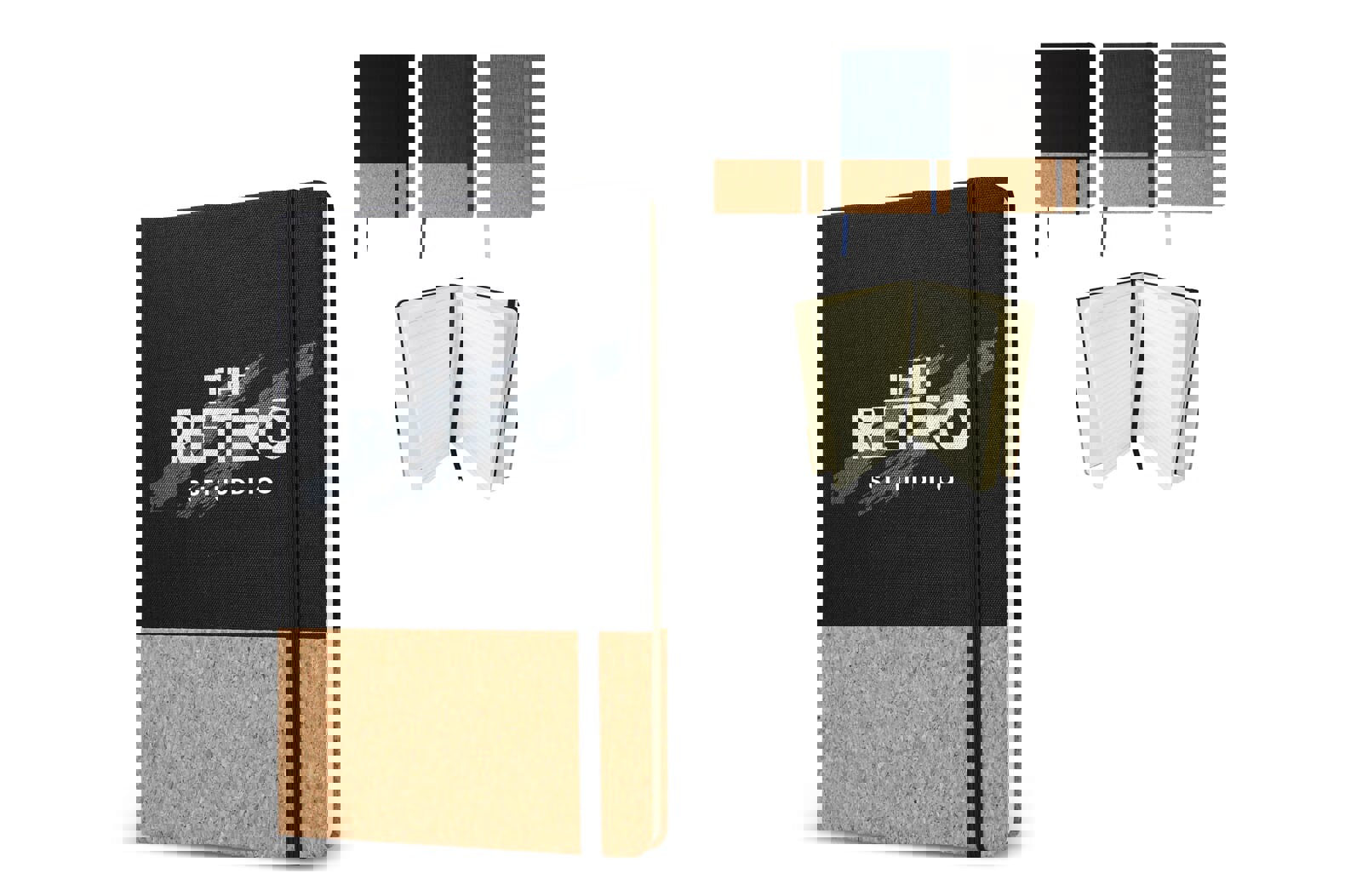 This notebook has a cover made of recycled PET and cork with 80 lined 70 grams FSC-certified paper sheets. It includes an elastic band closure and a ribbon bookmark for added convenience. Made with R-PET